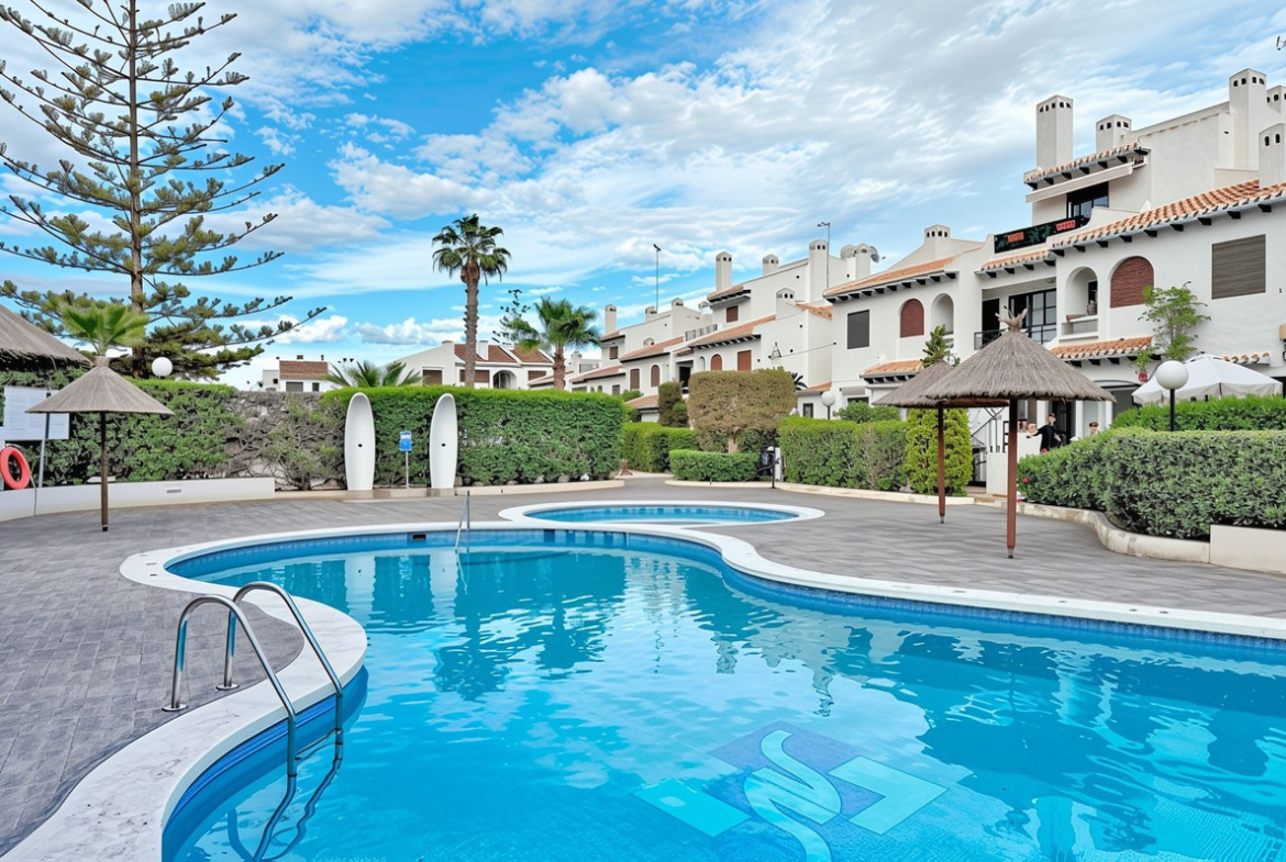 Take a look at this Beautifully Renovated Ground Floor Apartment located in the exclusive Residencial Sol y Verde in Cabo Roig. The property consists of 2 bedrooms, 1 bathroom, living/dining area with fireplace and a fully fitted kitchen. The property benefits with a private Garden overlooking the communal pool and direct access to Cala Capitán beach (just a 5-minute walk away). and storage room