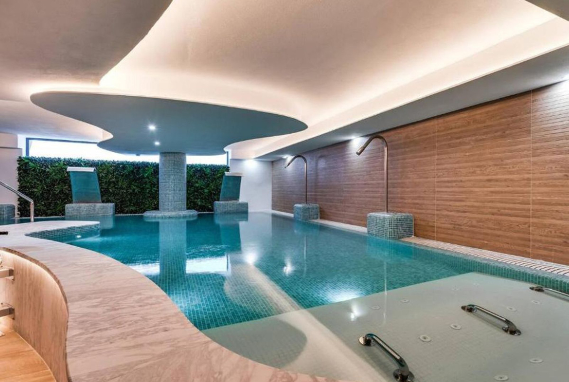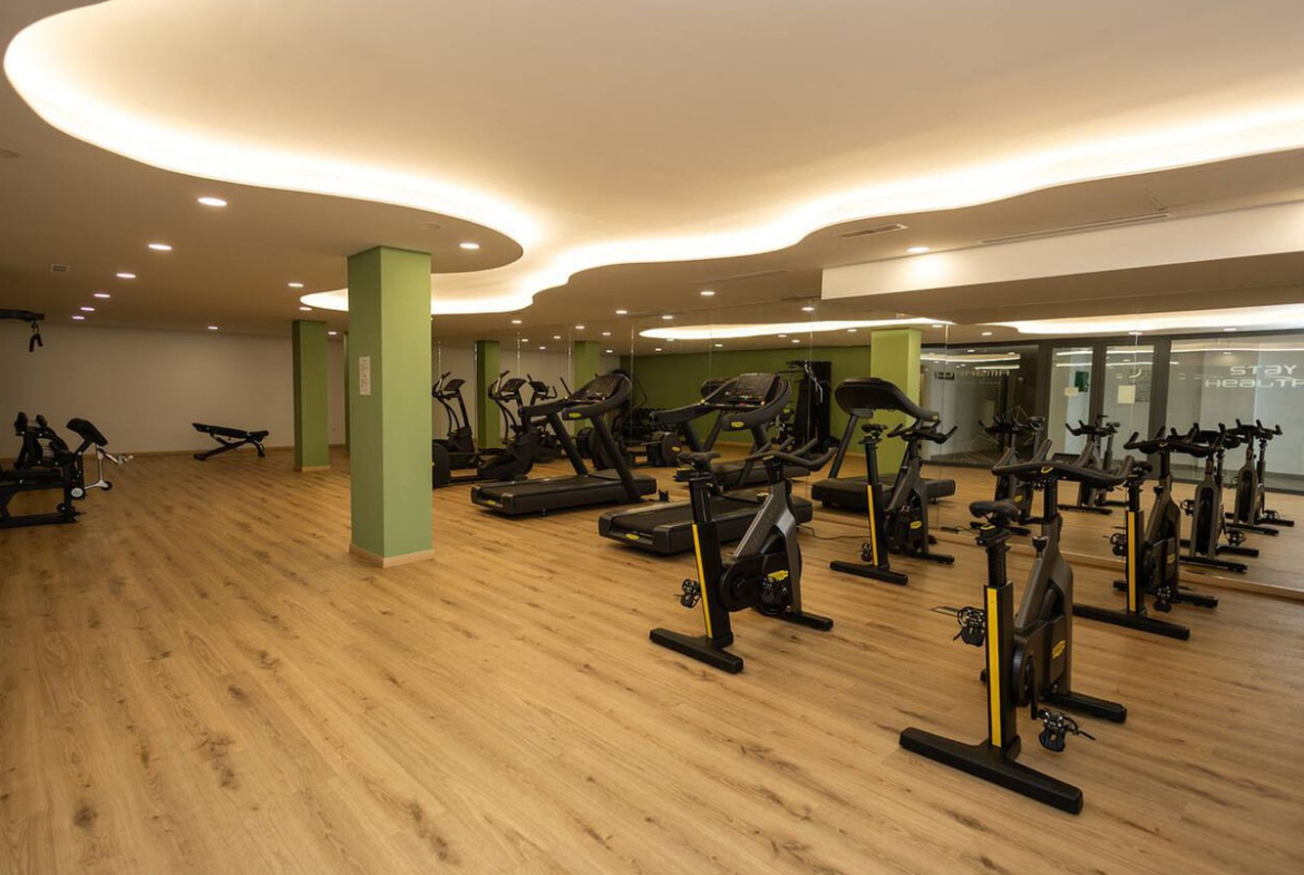 Ipanema's themed paths lead through beautiful green areas to facilities such as the fully equipped professional gym and a private spa with a heated indoor pool, sauna, steam room, and men's and women's locker rooms.