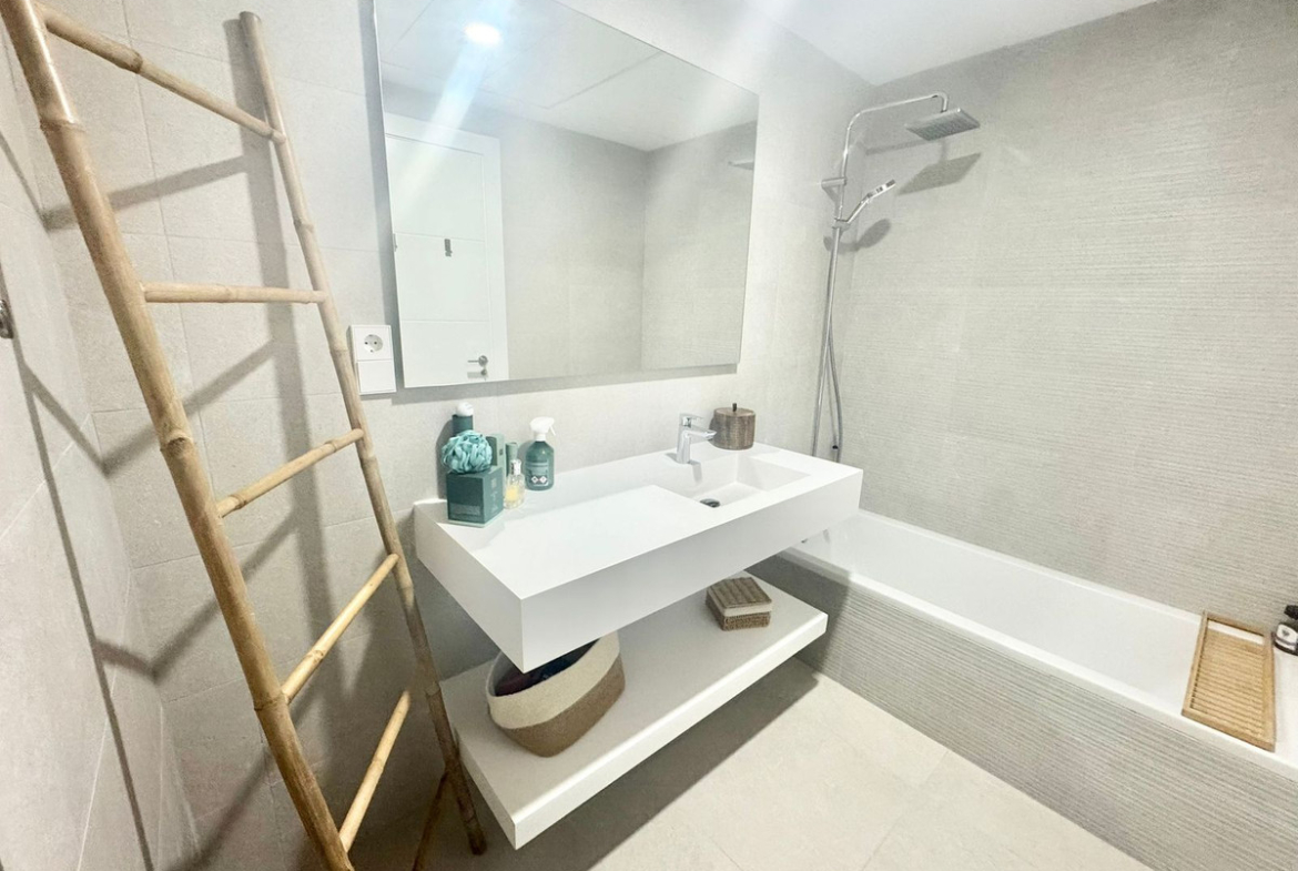 This stunning 2-bedroom, 2-bathroom flat in the prestigious Ipanema complex offers a contemporary coastal lifestyle just steps from La Cala de Mijas and the renowned Calanova Golf course. Fully furnished with modern finishes, the apartment features a spacious open-plan living area that seamlessly connects to a large terrace, perfect for entertaining or simply enjoying the panoramic sea and mountain views.