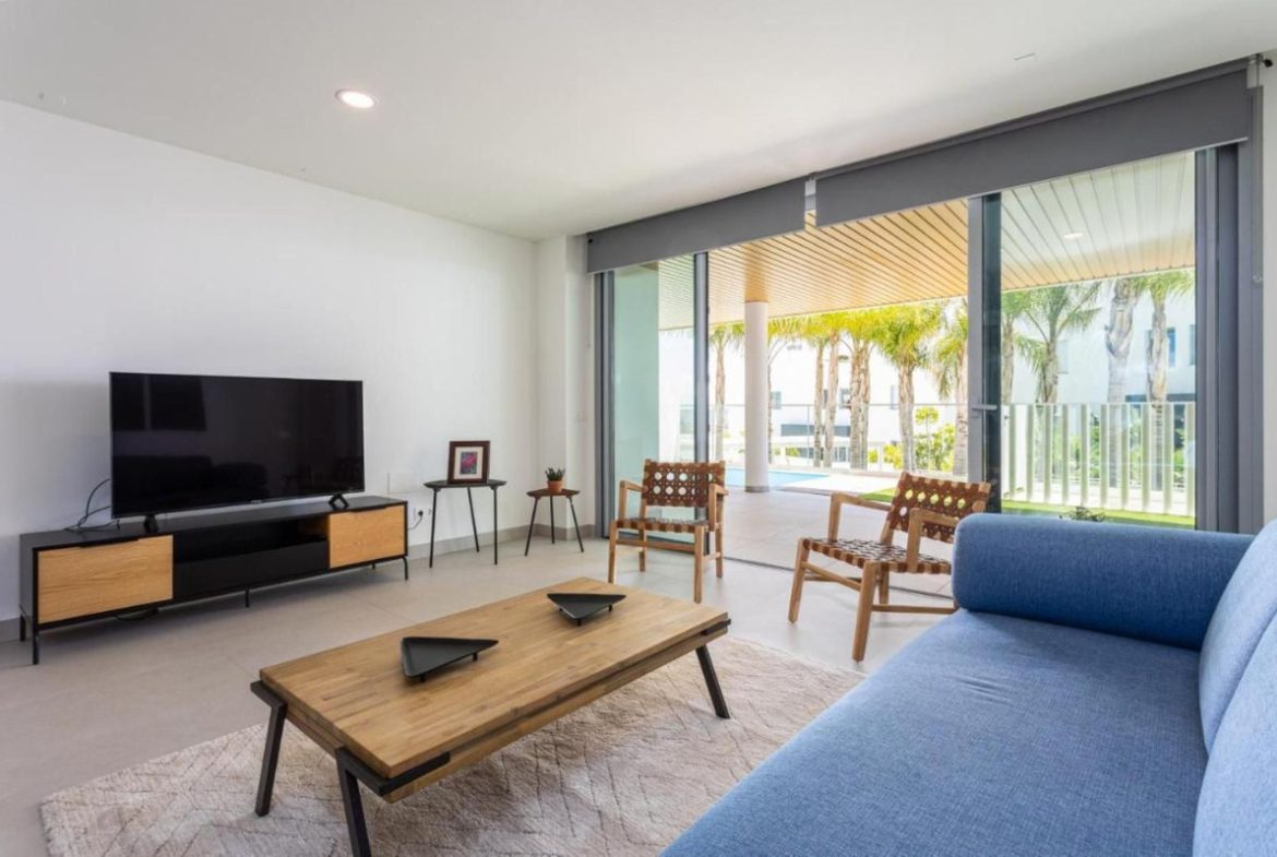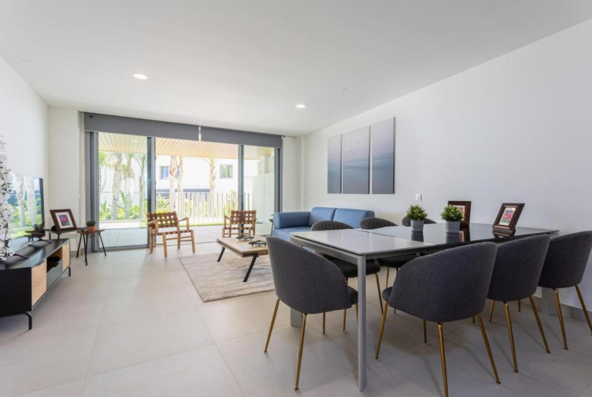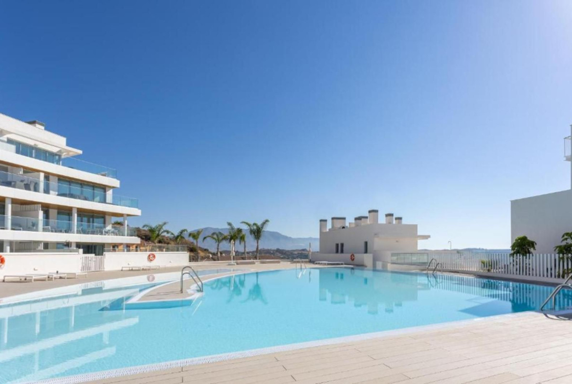 Welcome to One Residences, Calanova Golf, Mijas. This is a unique opportunity to purchase a spacious ground floor apartment with private garden and pool, and panoramic golf, sea and mountains views, and perfect south orientation. Ample living room with open plan a fully fitted kitted kitchen and direct access to an ample, covered terrace and a private garden with pool and breathtaking views over the Calanova Golf Course. Two bedrooms, each featuring its own bathroom and direct access to the mentioned terrace and private garden, a guest toilet and an independent laundry room. Underfloor heating throughout the apartment, a home automation system, etc. are some of the property features. Two underground parking spaces and a storage room are also included in the sale price.
