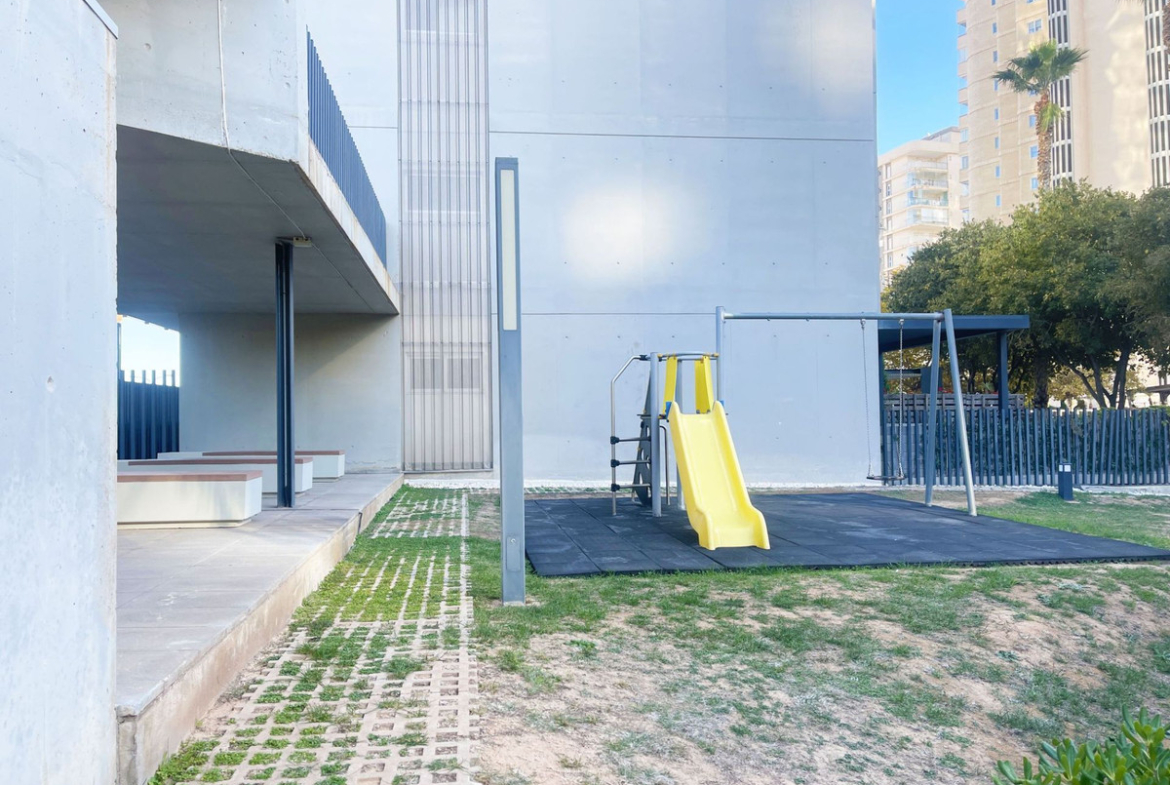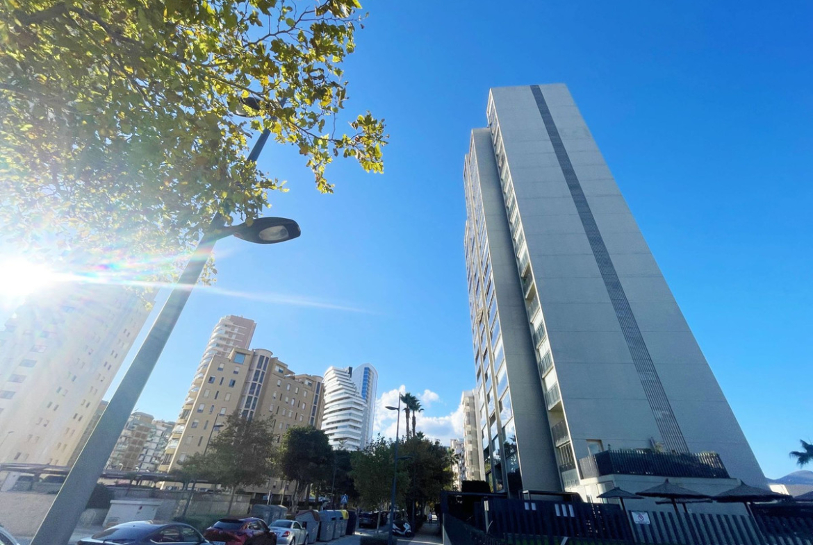 Two-bedroom apartment on the second line of Arenal Beach in Calpe, Costa Blanca, with a communal pool and sea views, just 50 meters from the beach.