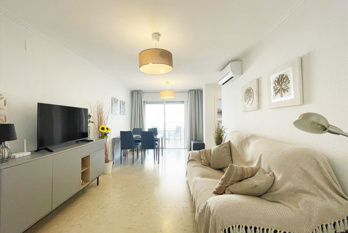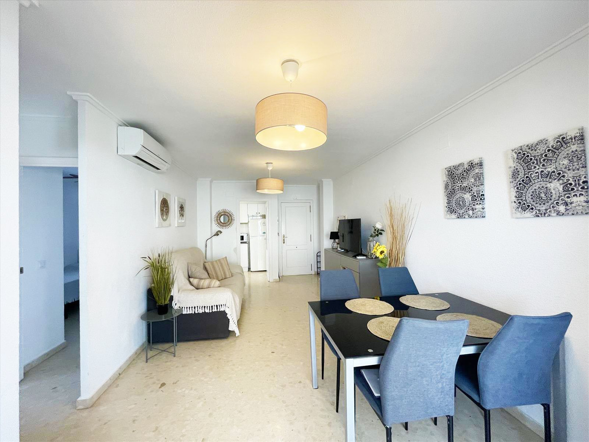 This 80 m² apartment is located on the fifth floor of the building, which features an elevator, facing southwest. It is situated just 100 m from the beach, 50 m from restaurants, 75 m from supermarkets, and 75 km from Alicante Airport.
