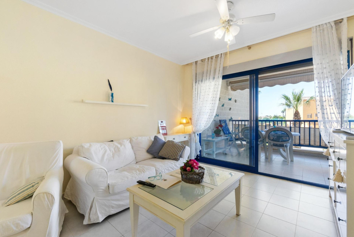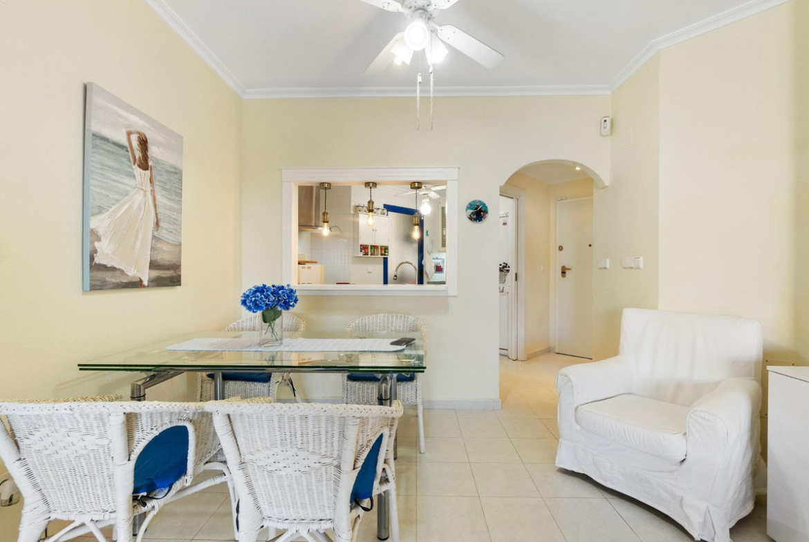 This spacious and bright apartment is located in the exclusive Aguamarina residential complex, Punta Glea, on the beachfront, with direct access to the seafront promenade. Located on the first floor, it faces southeast to enjoy the sun almost all day long. With a surface area of 78 m², it has a very convenient layout, offering comfort and functionality.~The apartment has two large bedrooms, each with built-in wardrobes, providing plenty of storage space, and two full bathrooms.~The separate kitchen is fully equipped and includes a laundry room. A bright living-dining room and a large terrace, accessible from the living room and the master bedroom, are the perfect place to enjoy views of the complex's gardens and the sea. The apartment is sold partially furnished and has ducted air conditioning. The apartment also comes with a parking space in the underground garage.~The residential complex has a spectacular swimming pool, surrounded by gardens, ideal for enjoying sunny days and relaxing just steps from the sea. An unbeatable location, with the convenience of being right on the beach and with all amenities within walking distance.~