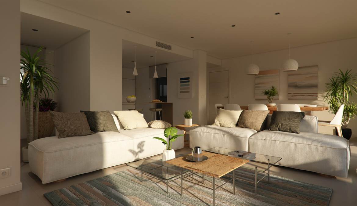 1, 2, 3 or 4 apartments with spacious terraces, and ground floors with a garden and rear terrace.