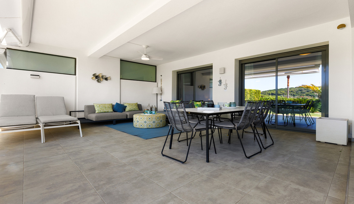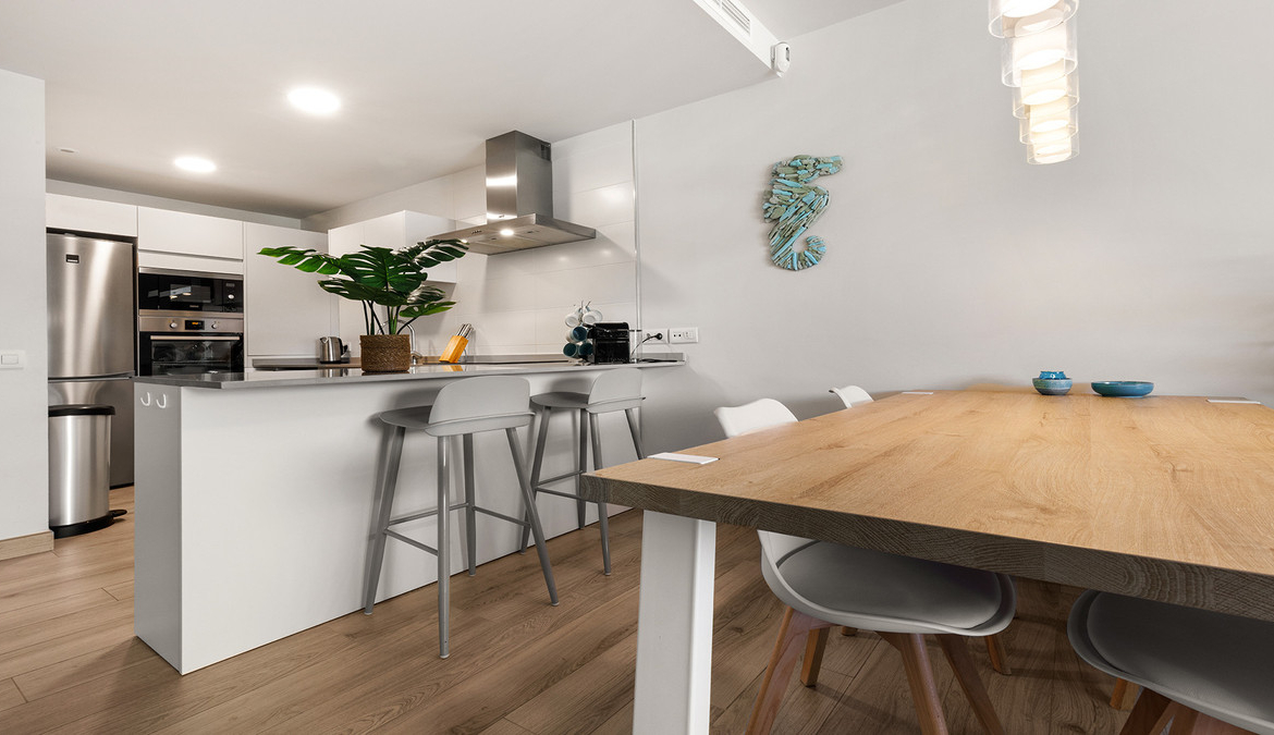 The home welcomes you with a bright open-concept kitchen and living space, leading seamlessly to a large private terrace and garden. This outdoor area is perfect for enjoying the Mediterranean lifestyle, whether dining al fresco, entertaining friends, or simply unwinding in the sun.