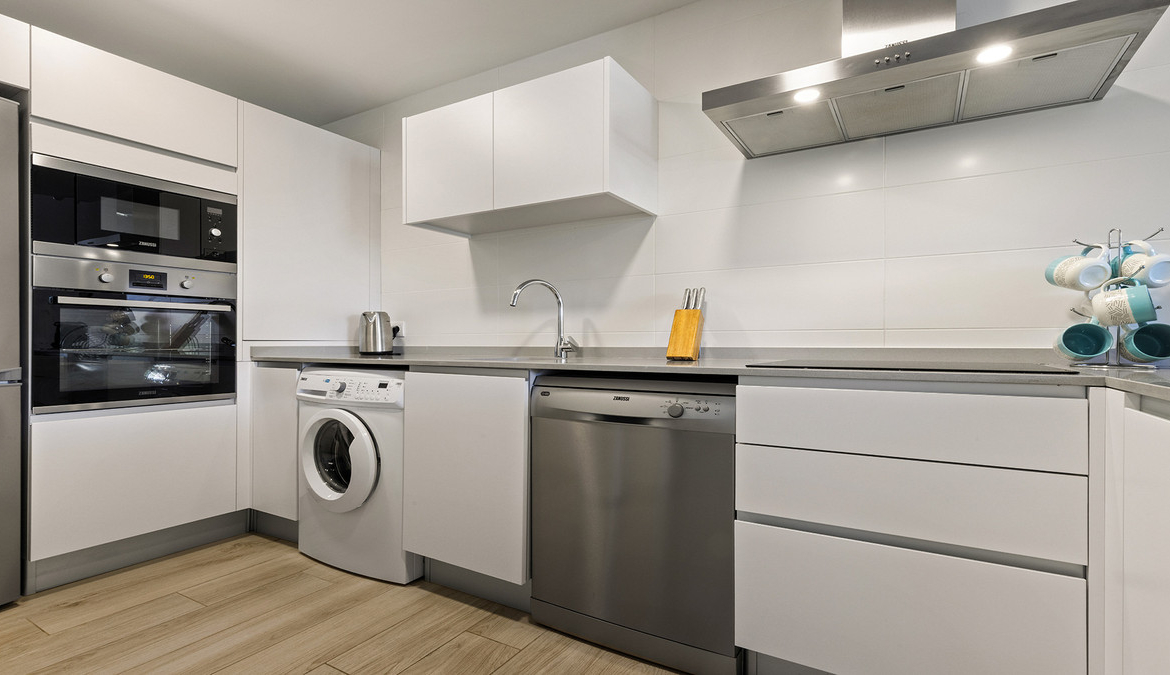 The property features two comfortable double bedrooms with fitted wardrobes and two generous bathrooms, one of which is en-suite. Every detail has been carefully maintained, making the apartment move-in ready. Modern comforts include air conditioning, electric blinds, and solar panels that add an eco-friendly touch. A private parking space and storage room are also included.