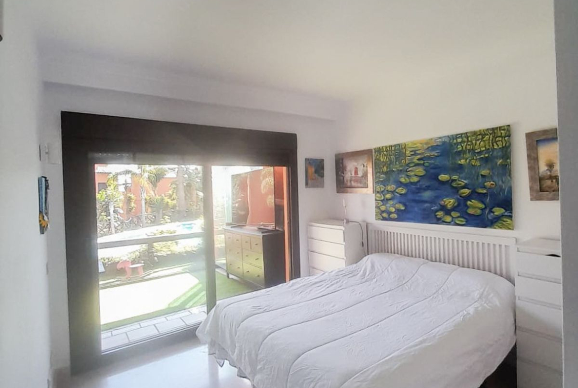 We present this spacious and very bright ground floor apartment. Upon entering, we find an entrance hall that leads to a separate kitchen with a laundry room and to a very open living-dining room thanks to a large window that connects to the generous terrace, with partial sea views, from which there is direct access to the communal pool. The living room also has two additional windows on the side, providing natural light throughout the day.