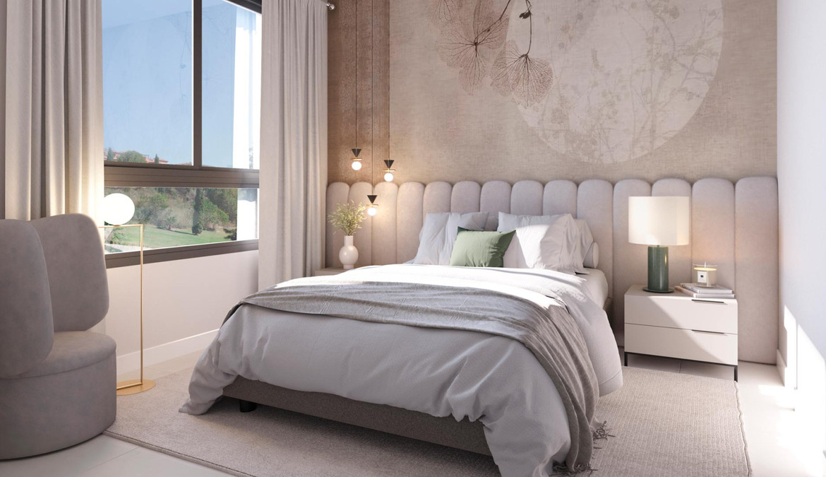 The development features nine blocks with west-southwest orientation, maximising natural light and offering views of the surrounding landscape, some with sea views. Communal areas include gardens, a swimming pool, and a gym. The complex is equipped with a sophisticated security system and first-class wellness facilities. Each home is designed to optimise space, ensuring functionality and aesthetics. Living and dining rooms connect to spacious terraces, and open-plan kitchens are fully equipped with state-of-the-art, energy-efficient appliances. The development is committed to sustainability without sacrificing comfort.