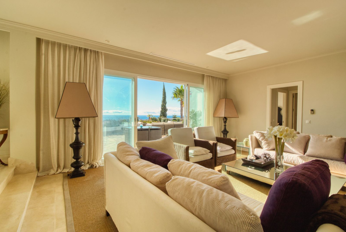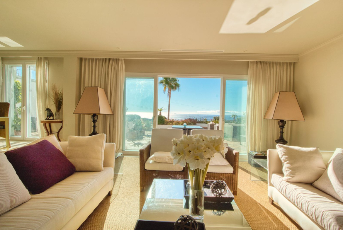 This beautiful property offers 2 bedrooms, 2 bathrooms, a guest toilet, a fully fitted kitchen, and a spacious living and dining area with access to a large terrace that boasts panoramic views of the nearby coastline. Both bedrooms and the kitchen provide as well direct access to the terrace.