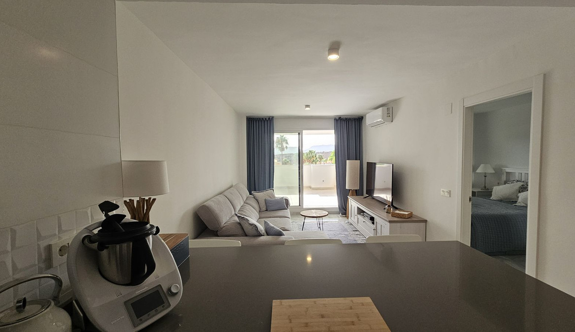 A bright and modern first-floor apartment located in the peaceful Doña Julia Golf Resort, Casares Costa. The property offers a functional layout with an open-plan living area, a fully equipped kitchen, two bedrooms, and two bathrooms.