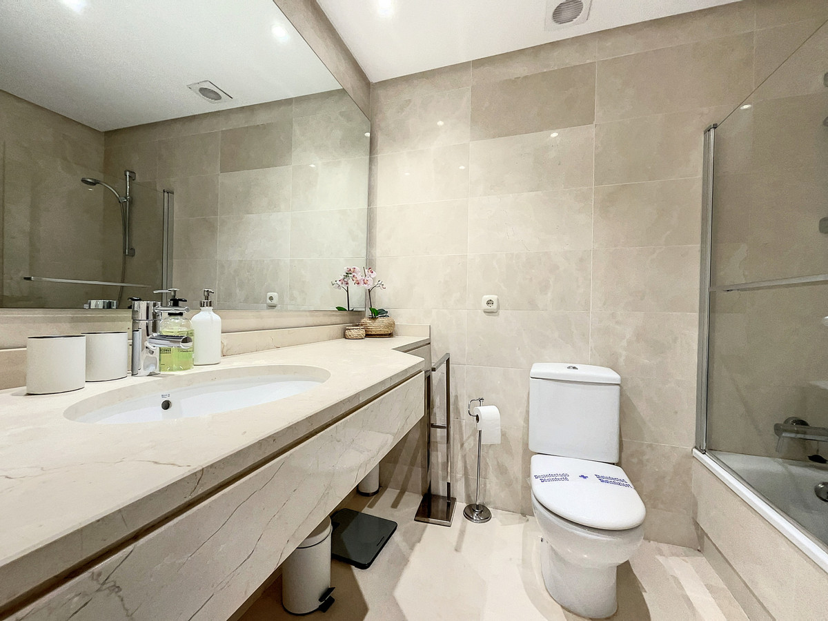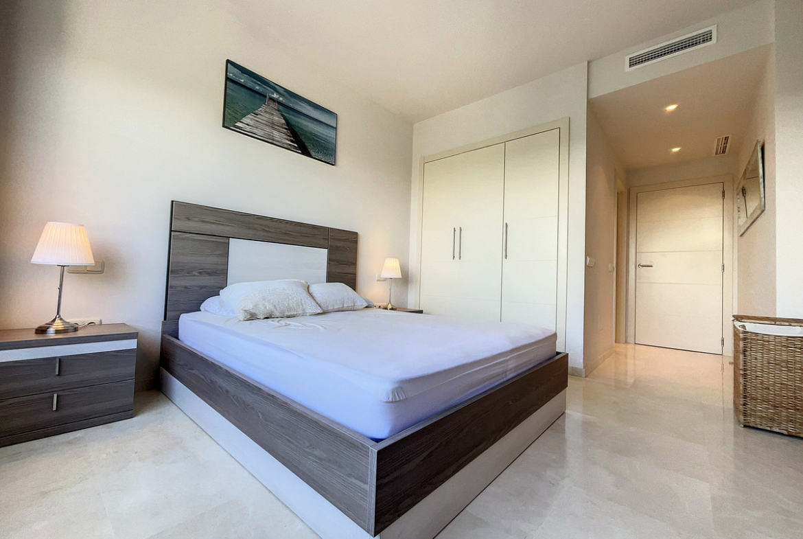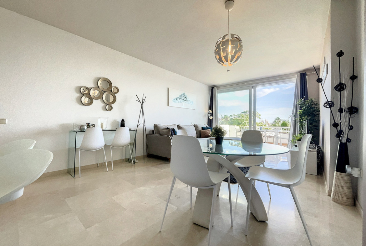 Apartment for sale in Alcazaba Lagoon, Casares with 2 bedrooms, 2 bathrooms and with orientation south/west, with communal swimming pool and communal garage (1 parking spaces). Regarding property dimensions, it has 87.03 m² built and 12.22 m² terrace. Has the following facilities amenities near, fully furnished, fully fitted kitchen, utility room, marble floors, gym, security entrance, double glazing, telephone, private terrace, living room, separate apartment, country view, mountain view, internet – wi-fi, fitted wardrobes, gated community, lift, garden view, pool view, street view, doorman, close to children playground, close to sea / beach, close to golf, uncovered terrace, balcony, handicap accessible, excellent condition, ceiling cooling system, ceiling heating system, saltwater swimming pool, close to shops, close to schools, surveillance cameras, pets allowed and internet – fibre optic.