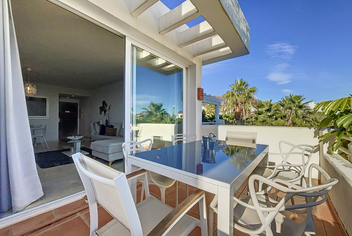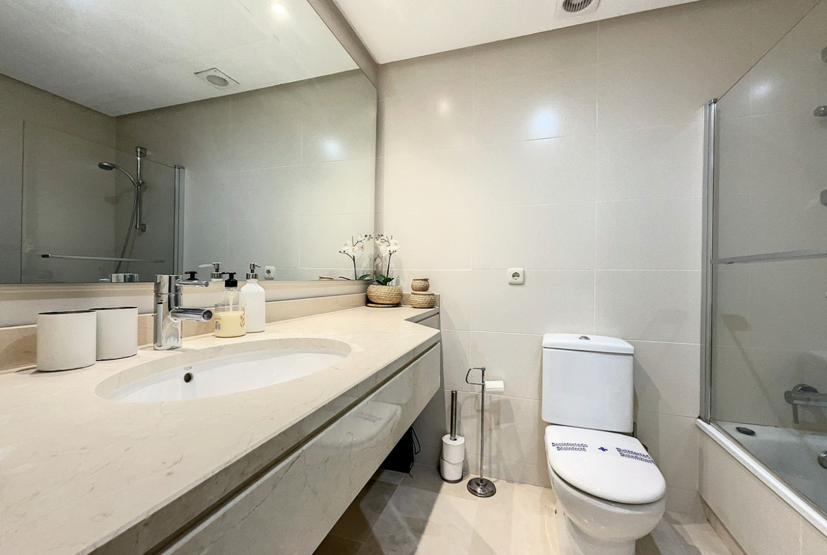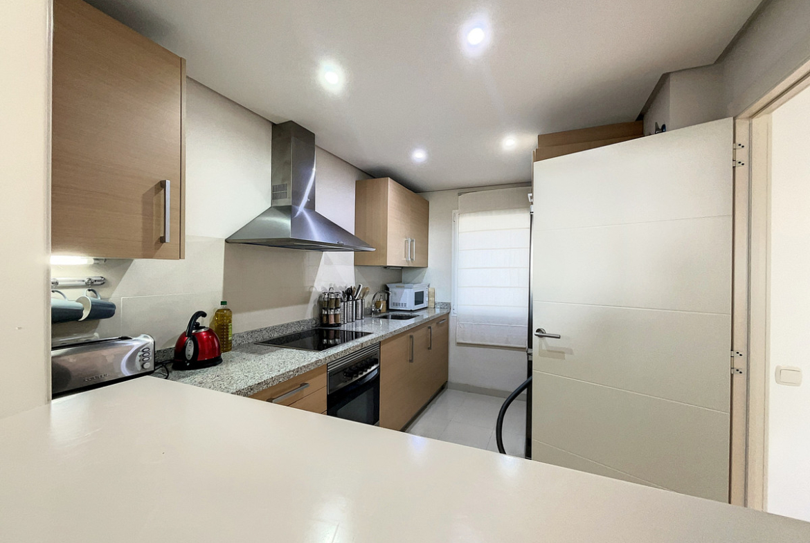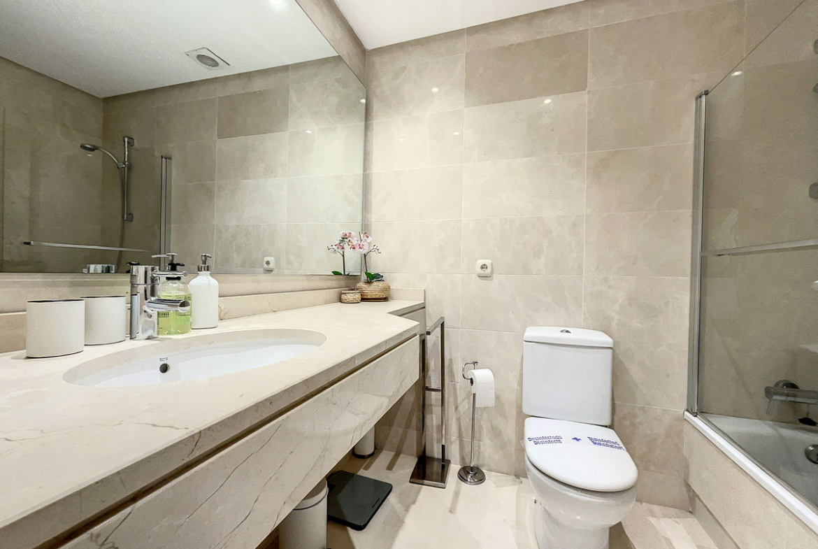 Apartment for sale in Alcazaba Lagoon, Casares with 2 bedrooms, 2 bathrooms and with orientation south/west, with communal swimming pool and communal garage (1 parking spaces). Regarding property dimensions, it has 87.03 m² built and 12.22 m² terrace. Has the following facilities amenities near, fully furnished, fully fitted kitchen, utility room, marble floors, gym, security entrance, double glazing, telephone, private terrace, living room, separate apartment, country view, mountain view, internet – wi-fi, fitted wardrobes, gated community, lift, garden view, pool view, street view, doorman, close to children playground, close to sea / beach, close to golf, uncovered terrace, balcony, handicap accessible, excellent condition, ceiling cooling system, ceiling heating system, saltwater swimming pool, close to shops, close to schools, surveillance cameras, pets allowed and internet – fibre optic.