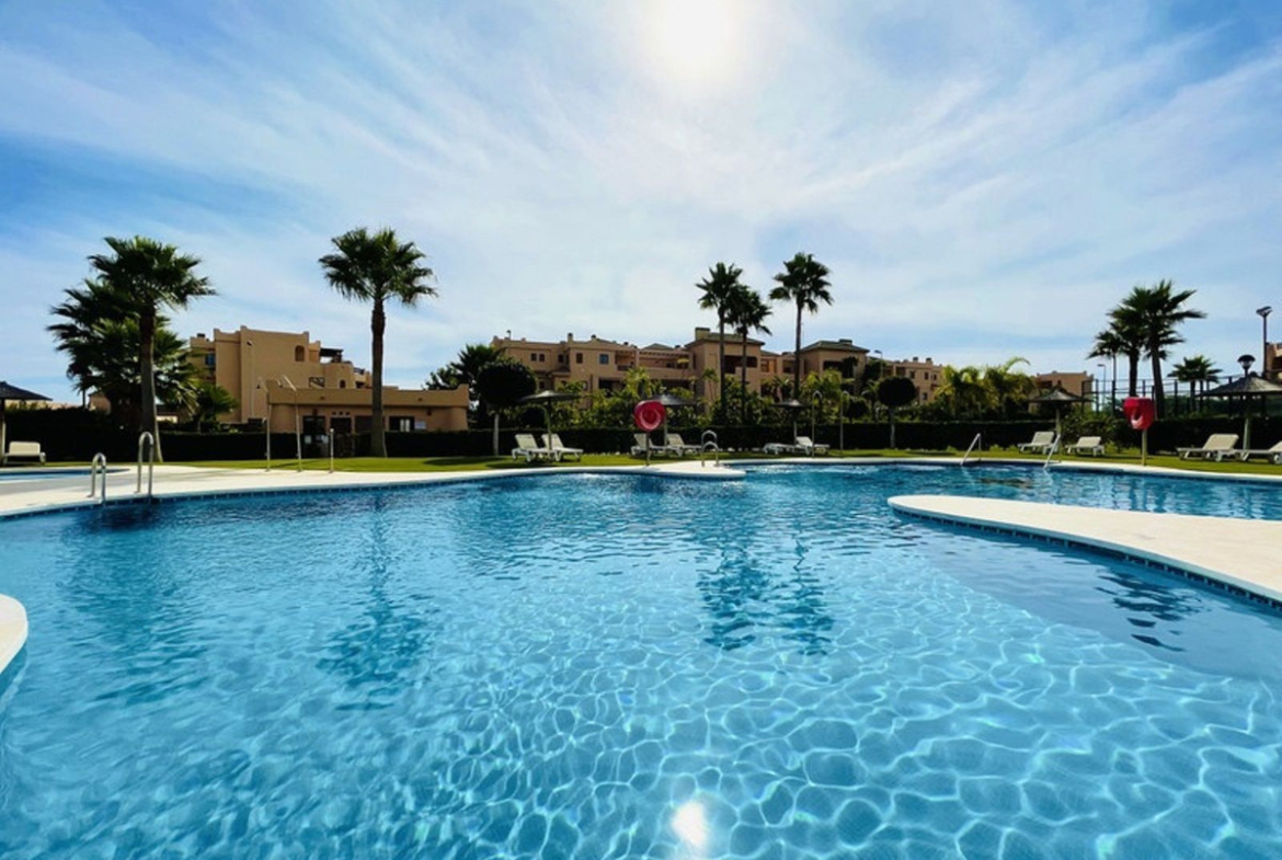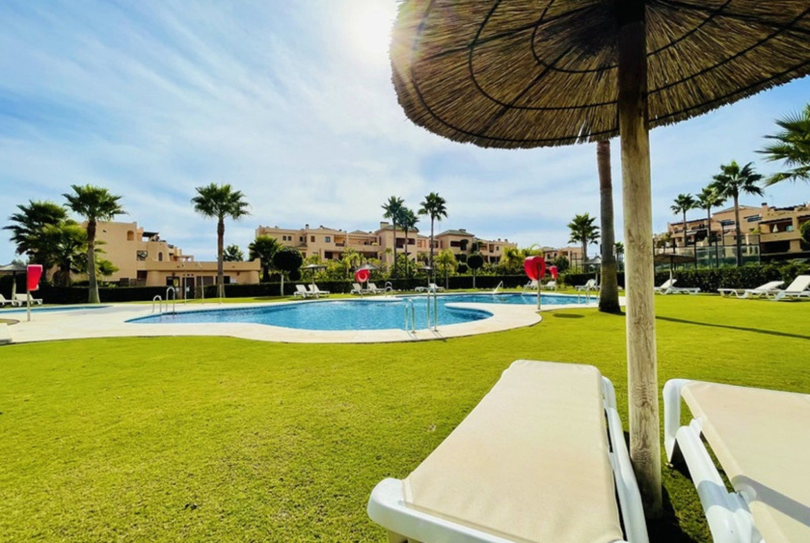 Located in the sought-after and well-maintained Casares Beach development, this bright south-facing first-floor apartment stands out for its spacious layout, comfort, and a magnificent private terrace that provides exclusivity and year-round enjoyment.
