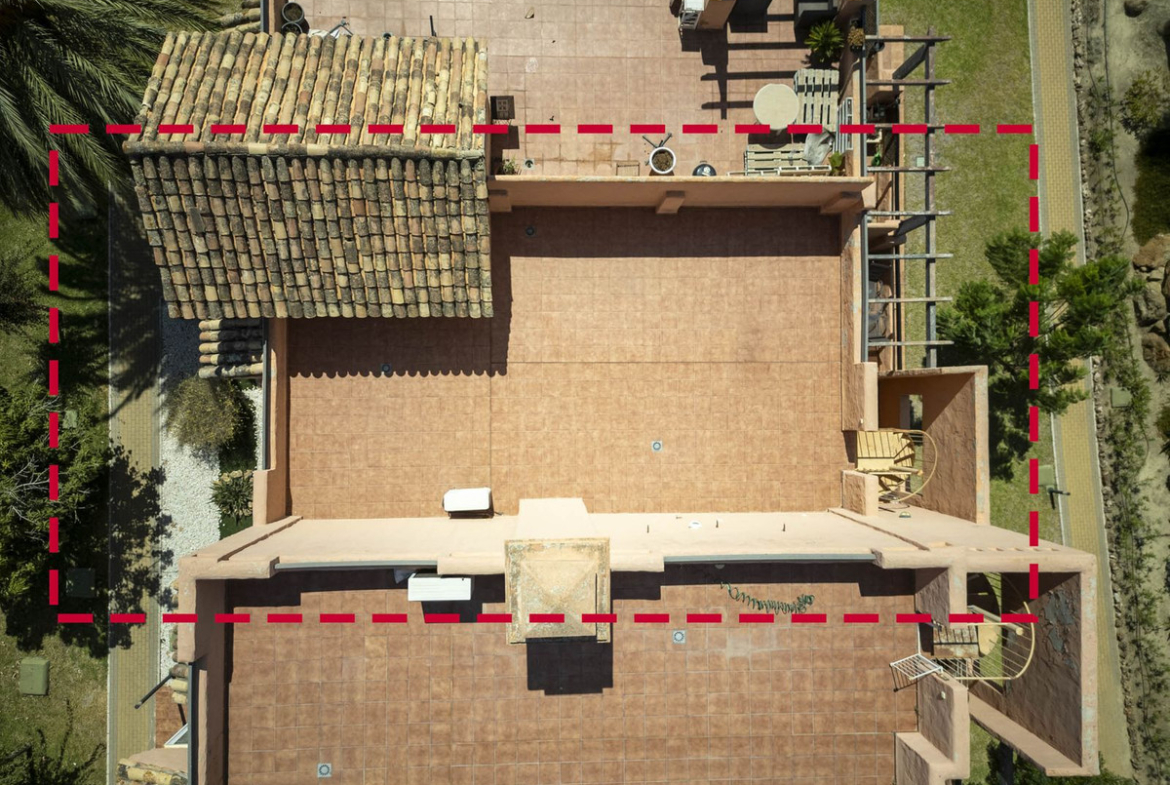 The property features 2 bedrooms and 2 bathrooms, designed for comfort and privacy. The master bedroom has an en-suite bathroom and direct access to the terrace. The bright living-dining room with marble floors connects to a 6 m² terrace, perfect for outdoor breakfasts or relaxing moments. From here, stairs lead up to the spectacular private solarium of approximately 74 m², an outstanding space to sunbathe, host gatherings, or create your own chill-out area with unbeatable views.