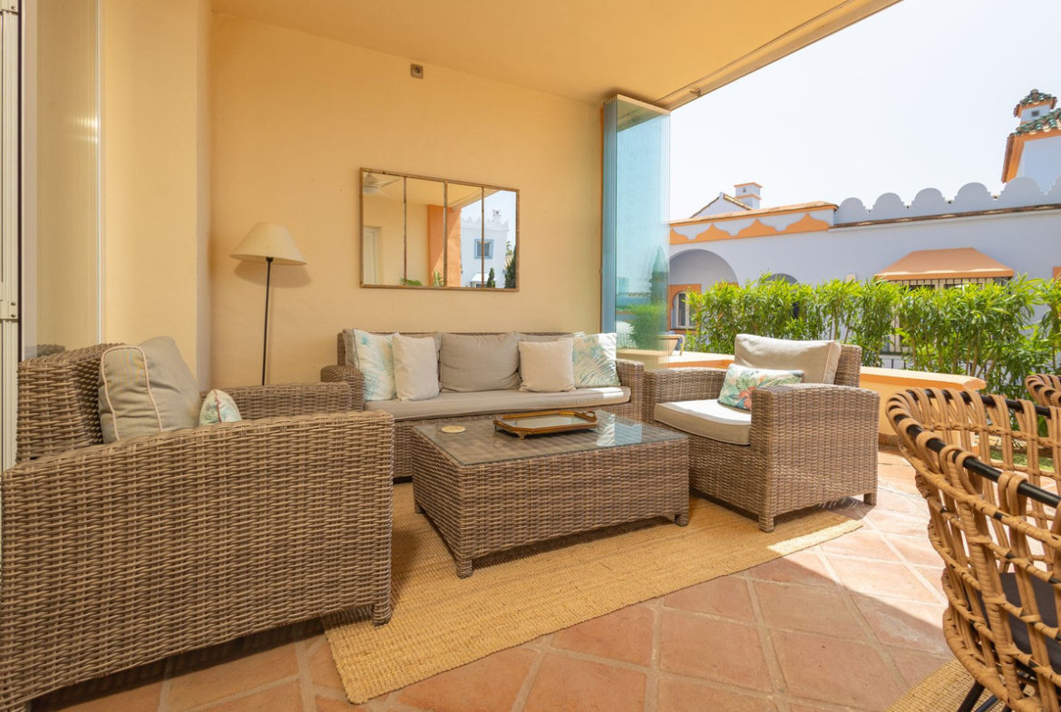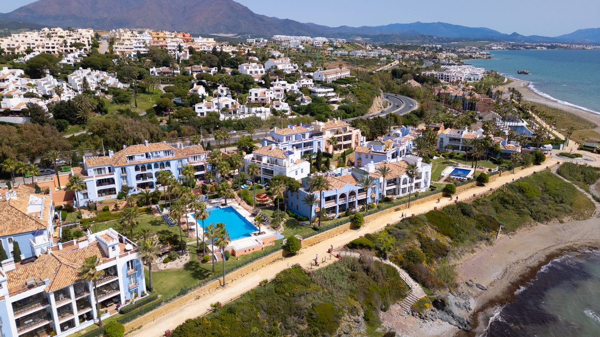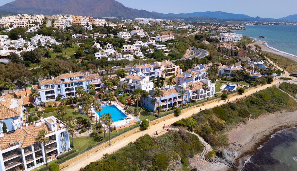 We are delighted to offer this beautiful sunny and bright apartment situated in one of the most sought after beachside development’s on the Casares Costa, ideally located between the vibrant town of Estepona and La Duquesa Marina. The property has been refurbished to a high standard, yet still retains its Al Andalus Moorish original features. Comprising of two large double bedrooms, two bathrooms (one en – suite), large living / dining room with direct access to the terrace with bi – fold glass curtains leading to the communal gardens and a large eat – in kitchen. The property further benefits from one underground parking space, a storage room, two pools (one heated) and 12hr security. The lucky buyer will enjoy lovely walks along the paseo where they will find a number beach restaurants, shops and bars. Last but not least the very prestigious Finca Cortesin Golf Resort which staged the 2023 Solheim Cup is only a short drive away.