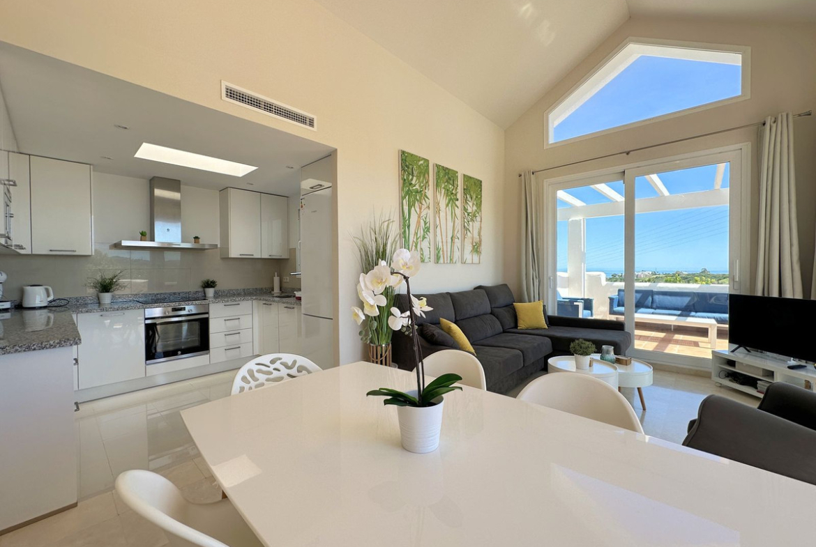 The penthouse is modern and spacious in design, with large windows that allow in natural light and offer stunning views, with an open layout that integrates the living room, dining room and kitchen, creating a perfect environment for entertaining and relaxing. relaxation. Furthermore, one of the most notable features of the penthouse is its spacious terrace, which offers space for dining alfresco, relaxing on comfortable outdoor furniture or even having a barbecue area. From the terrace, residents can enjoy unparalleled panoramic views while enjoying the Mediterranean climate.