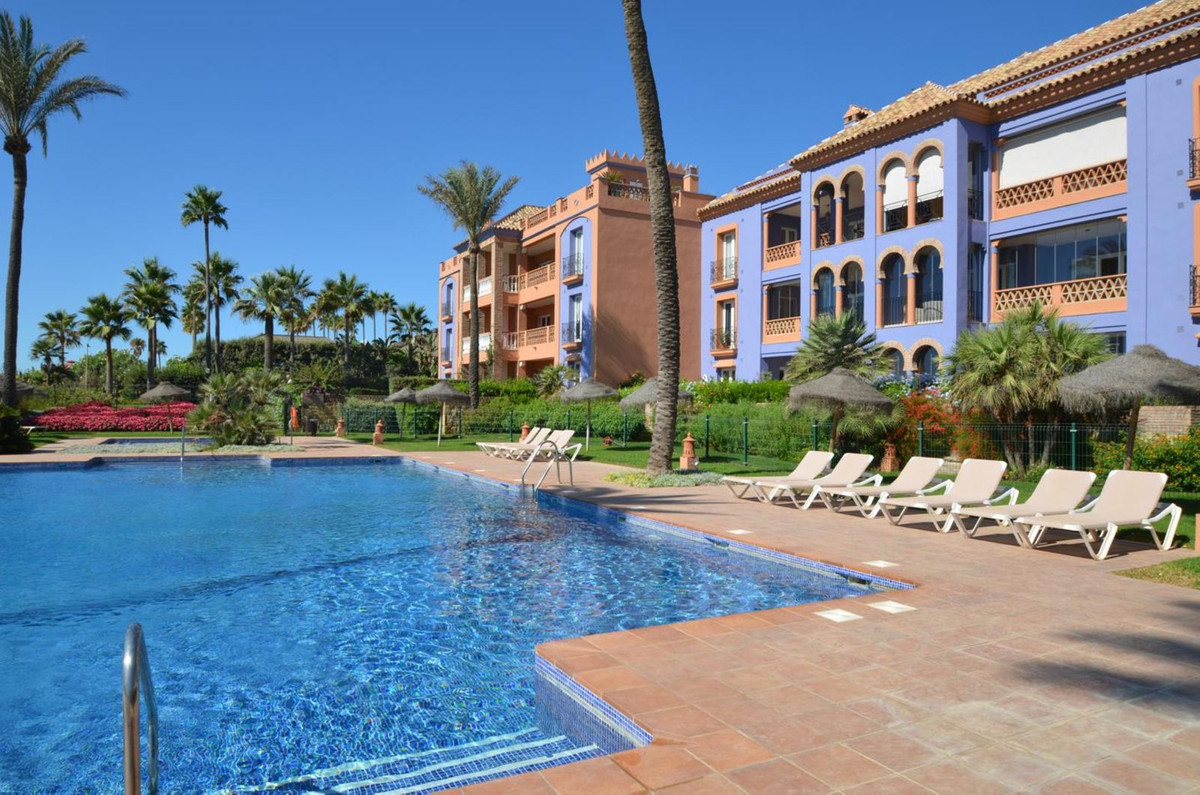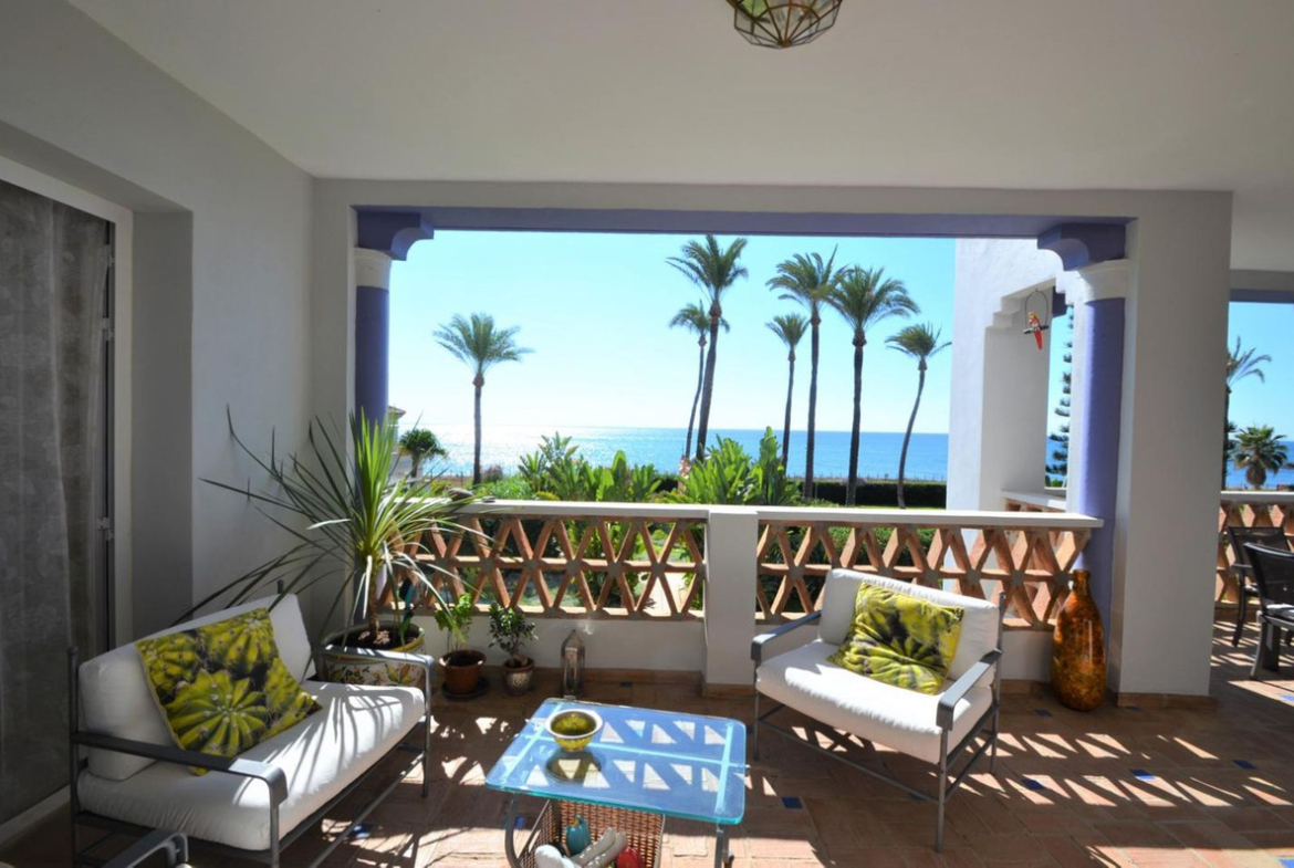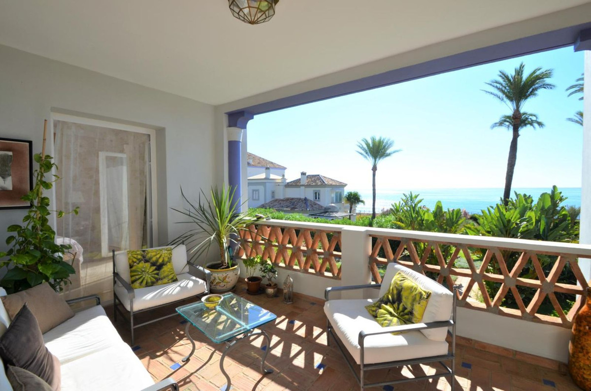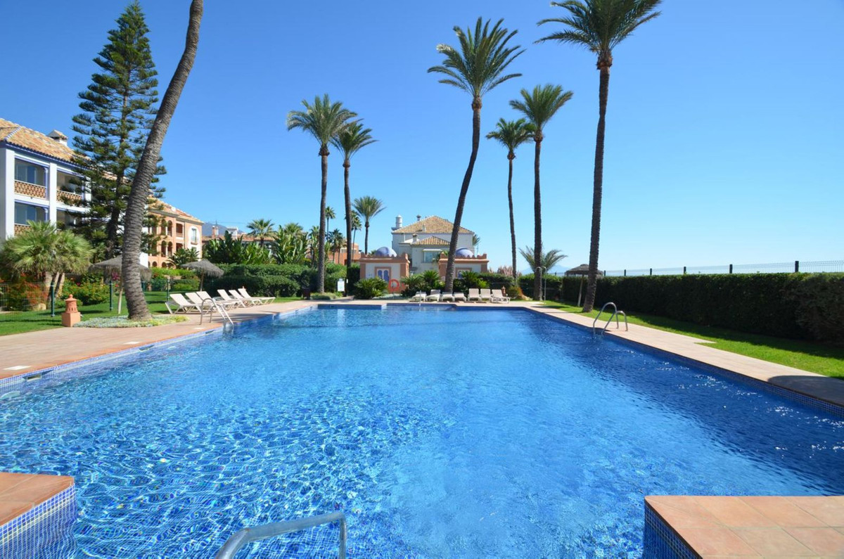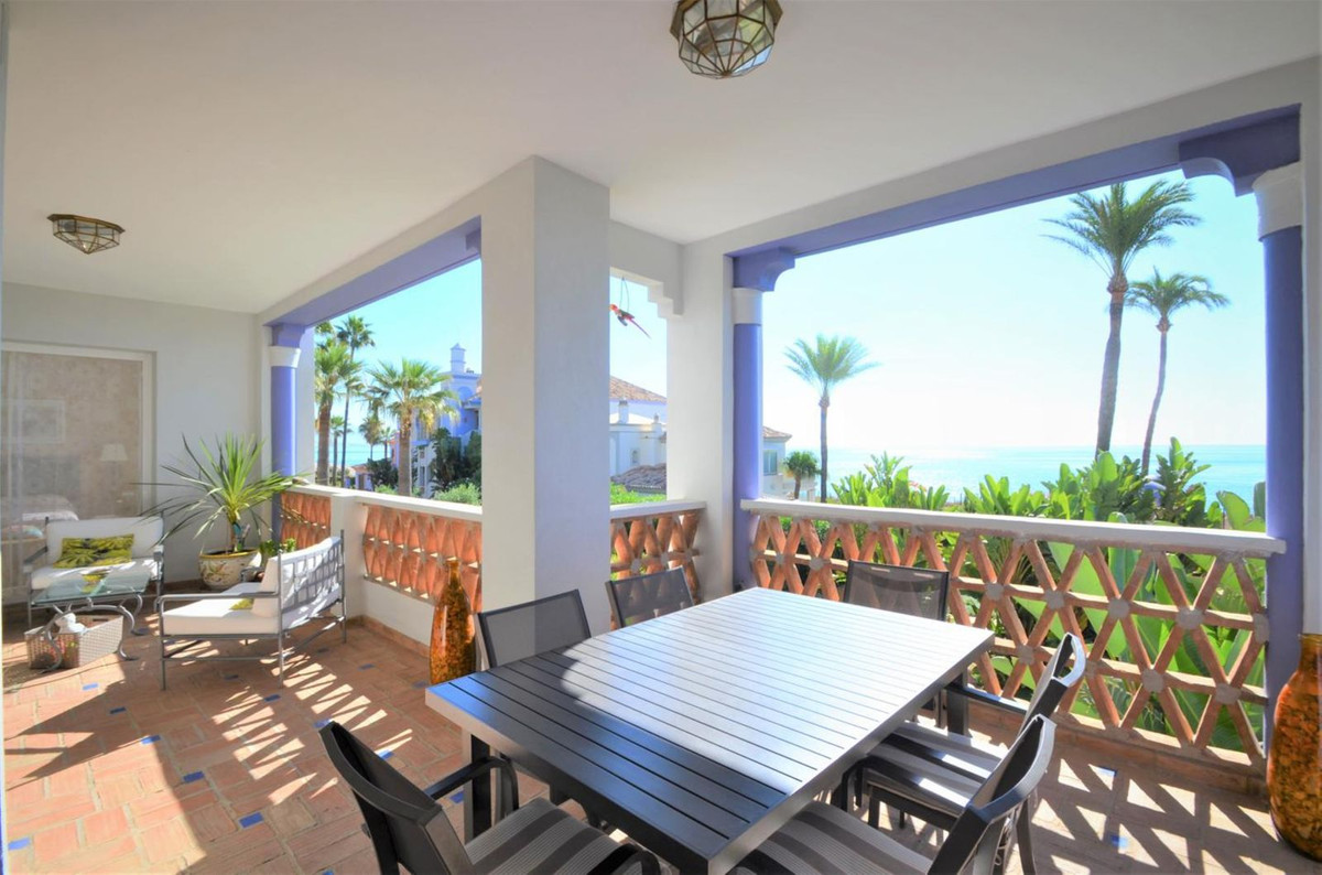 Luxury front line beach middle floor apartment. Located mid way between Estepona and the La Duquesa Marina, 5 minutes drive to all amenities and leisure areas, including excellent golf courses, one of them Finca Cortesín, home of the Volvo Masters.Only a few steps from magnificent beaches, restaurants and to a new beach club. 15 minutes walk through the prominade to the fishing village of Sabinillas. This property has just been recently reformed to a very high quality, magnificent kitchen with even coffee machine and wine cellar integrated, beautifull design living room, new a/c, etc. The property is south facing and enjoy stunning views to the Mediterranean Sea, Gibraltar and coast of Africa. Immaculate and quiet gated development with 24 hours security, with large gardens of beautiful features and fountains, 4 swiming pools, 2 of them heated. Great rental potential! Parking and storage room with an easy access with lift. Viewing is highly recommended!! JUST IN THE MARKET.