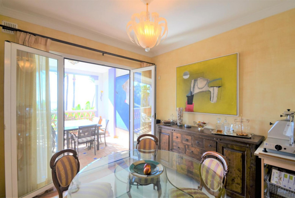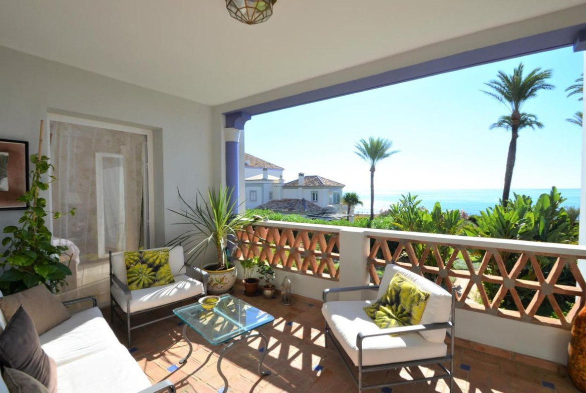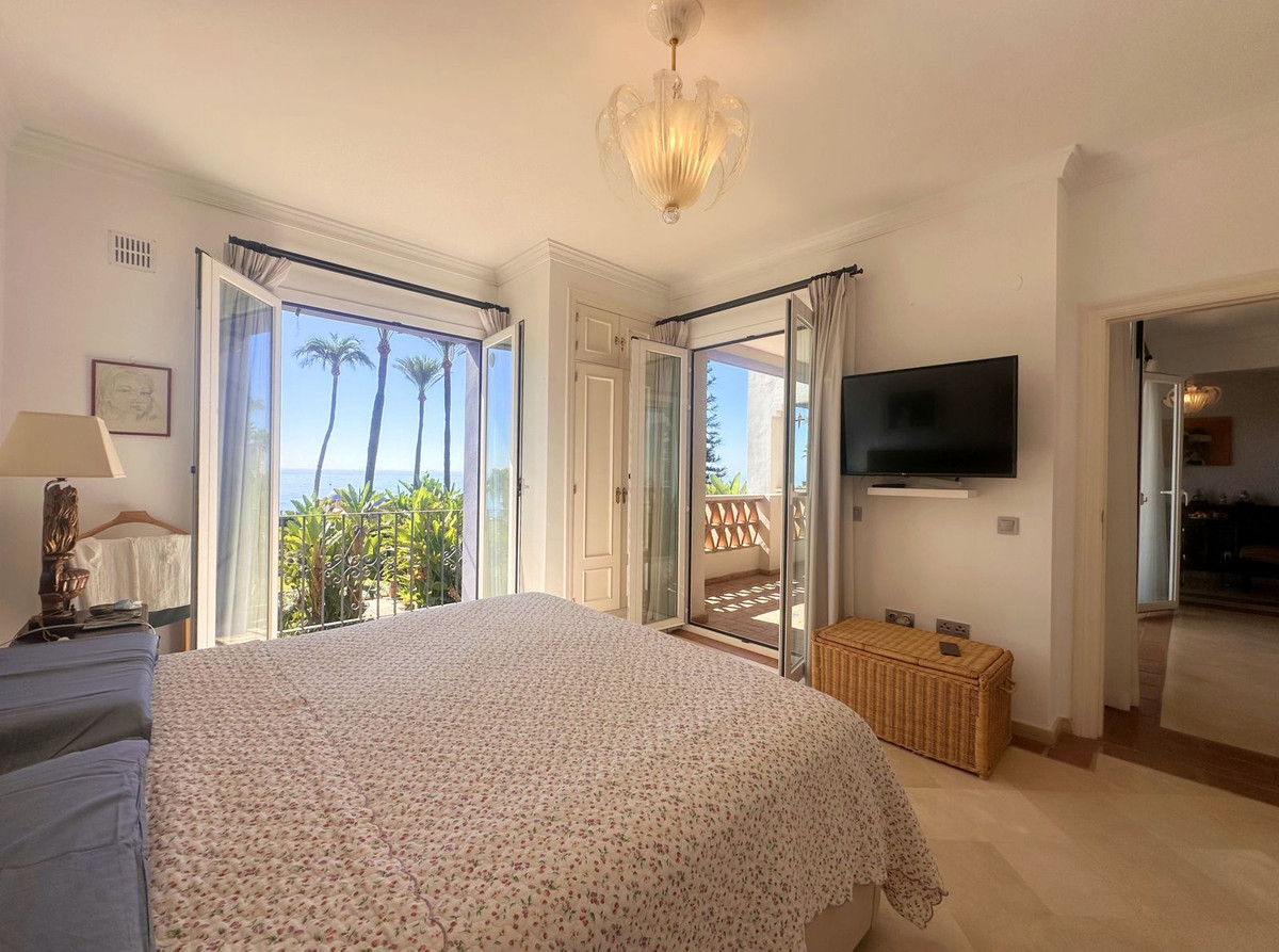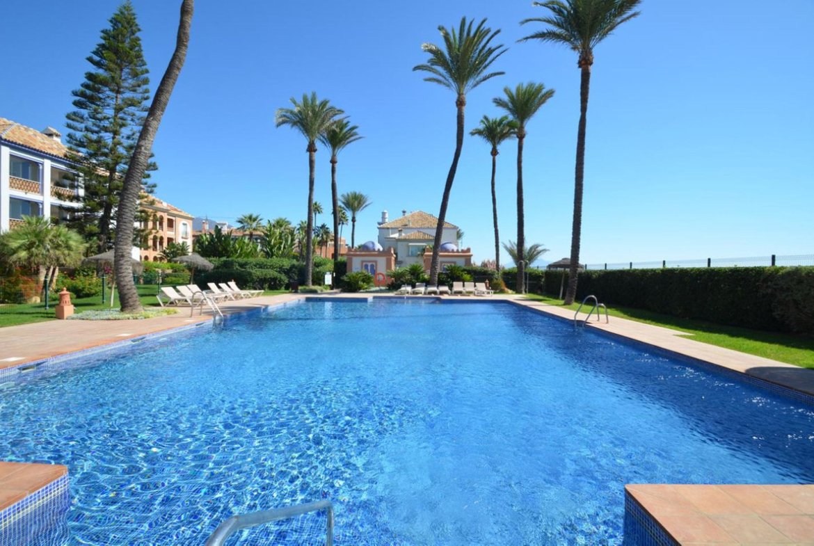 Luxury front line beach middle floor apartment. Located mid way between Estepona and the La Duquesa Marina, 5 minutes drive to all amenities and leisure areas, including excellent golf courses, one of them Finca Cortesín, home of the Volvo Masters.Only a few steps from magnificent beaches, restaurants and to a new beach club. 15 minutes walk through the prominade to the fishing village of Sabinillas. This property has just been recently reformed to a very high quality, magnificent kitchen with even coffee machine and wine cellar integrated, beautifull design living room, new a/c, etc. The property is south facing and enjoy stunning views to the Mediterranean Sea, Gibraltar and coast of Africa. Immaculate and quiet gated development with 24 hours security, with large gardens of beautiful features and fountains, 4 swiming pools, 2 of them heated. Great rental potential! Parking and storage room with an easy access with lift. Viewing is highly recommended!! JUST IN THE MARKET.