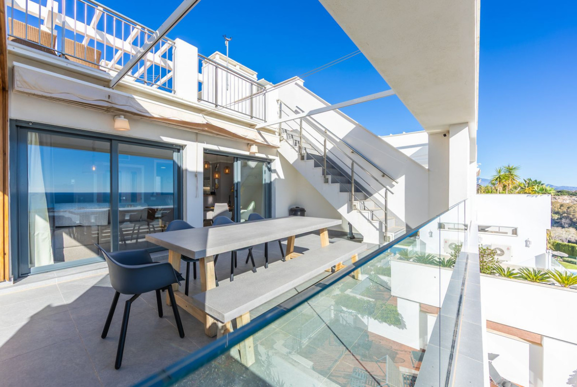 Magnificent penthouse with a large terrace and southeast-facing solarium, enjoying wonderful views of the sea and the golf course. Located in a beautiful residential complex, it sits in one of the most sought-after areas, surrounded by prestigious golf courses, in a peaceful setting away from noise. Just a 5-minute drive away, you’ll find the attractive beaches of Casares Costa, the charming village of Sabinillas, and the lively Puerto de la Duquesa, where you can enjoy all kinds of shops, restaurants, and leisure options.The property features an elevator from the garage and a communal swimming pool. It also includes an underground parking space and a storage room. An excellent opportunity not to be missed.