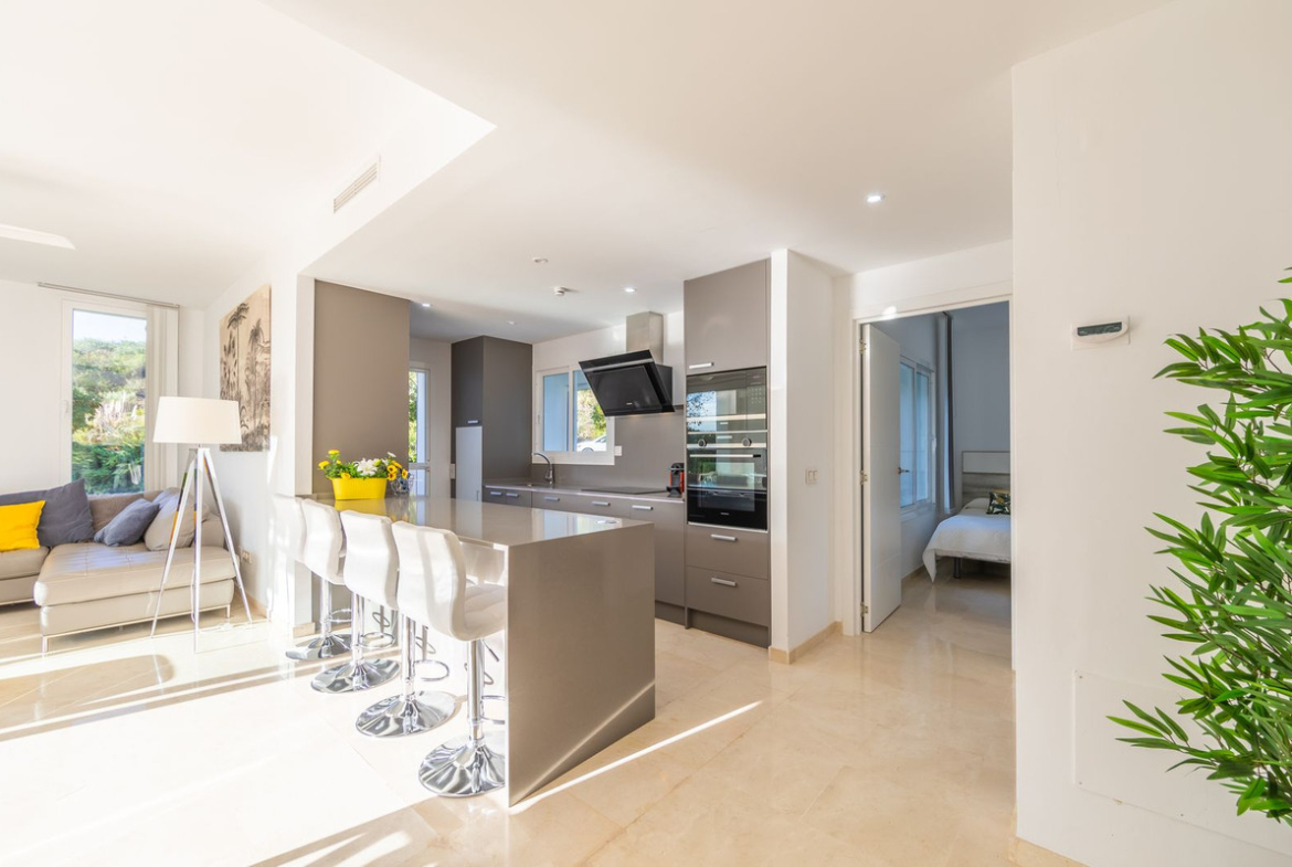 Discover this exclusive ground-floor apartment located in a prestigious residential complex in Casares, surrounded by a unique natural environment. This privileged setting stands out for its stunning crystal-clear artificial lagoon and lush gardens. Perfect for those seeking tranquility, luxury, and proximity to popular destinations such as Marbella and Gibraltar. The home is laid out on a single floor and features two bedrooms with a modern, bright design. Open spaces and large windows maximize natural light and seamlessly connect the living room, dining area, and kitchen—creating the perfect atmosphere for relaxing and entertaining. The spacious private terrace, facing south, is ideal for al fresco dining, unwinding, or enjoying a barbecue while taking in the breathtaking views of the Mediterranean Sea and the mountains. Finished to the highest standards, the property boasts marble floors, a fully equipped kitchen with state-of-the-art appliances, built-in wardrobes, and luxurious bathroom details. It is in excellent condition and ready to move in. Additionally, the apartment has a tourist license, making it a fantastic opportunity for both personal enjoyment and high-return vacation rentals. The residential complex offers exclusive amenities such as swimming pools surrounded by green areas, a gym, chill-out zones, children’s play areas, 24-hour security, and direct access to the crystal-clear lagoon—ideal for swimming and water sports. A private parking space and storage room are also included. Don’t miss the opportunity to live in this dreamy Mediterranean retreat where nature, luxury, and comfort come together perfectly. Come and see it—you’ll fall in love!