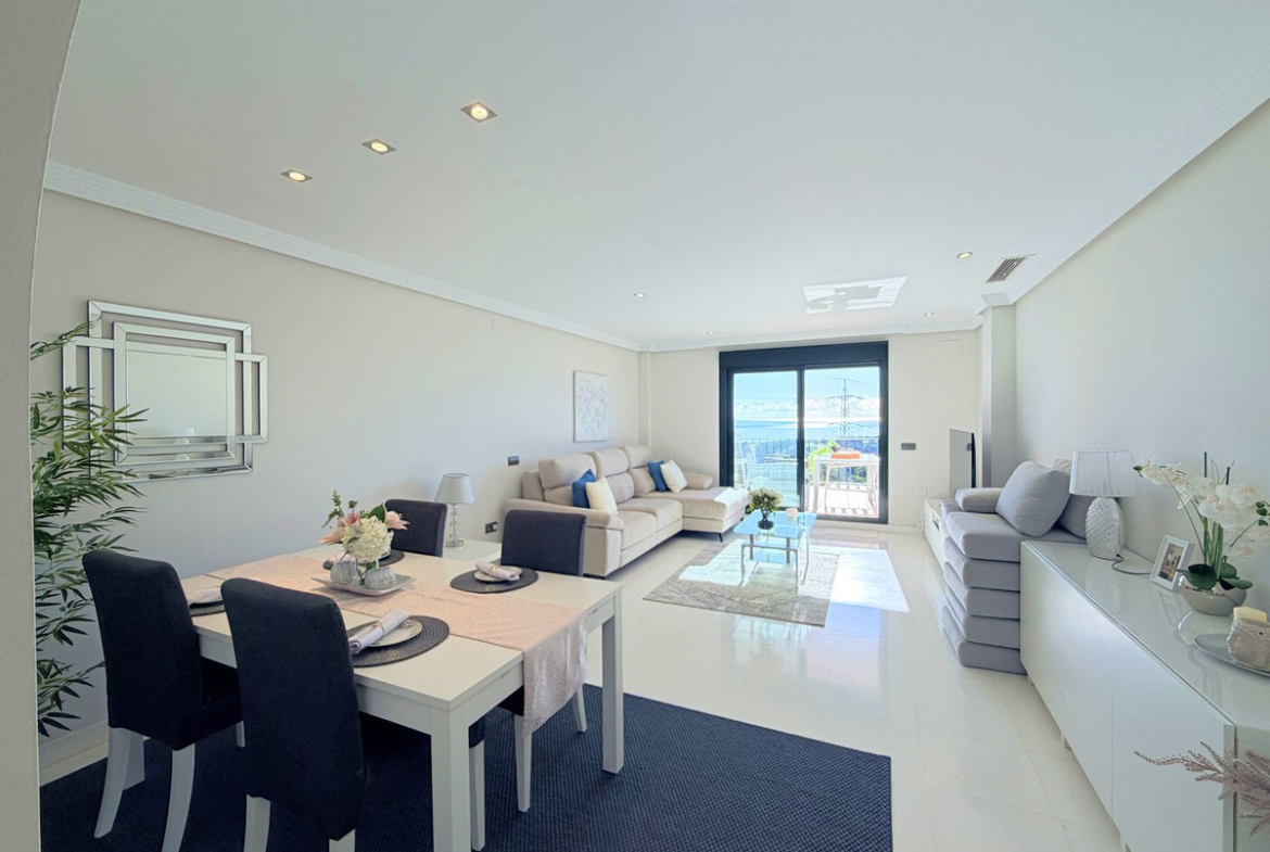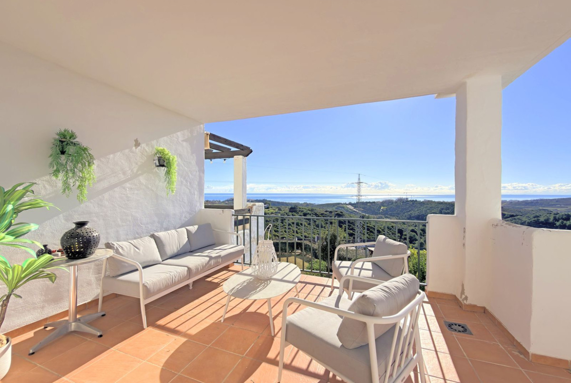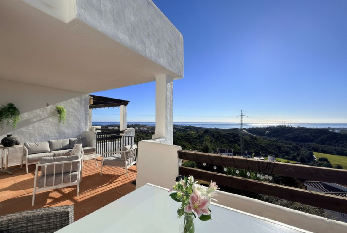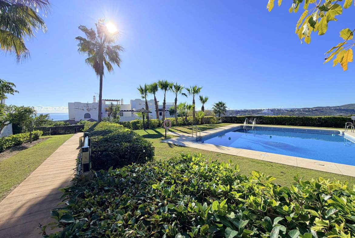 Spectacular apartment with golf and sea views in Casares Costa. Located in one of the most promising areas of the Costa del Sol, it perfectly combines tranquility, exclusivity, and proximity to the main destinations in the area. The property is situated between the prestigious Finca Cortesín and Doña Julia golf courses, surrounded by new luxury developments, and with the upcoming opening of a hotel by the renowned Conrad chain, enhancing the attractiveness and value of the surroundings. It is just 25 minutes from Marbella and 15 minutes by car from Sotogrande, both highly regarded for their gastronomy, shopping, leisure options, and international prestige. Only five minutes by car away, you can enjoy beautiful sandy beaches and a wide promenade with an excellent variety of restaurants, beach bars, and entertainment areas, all within a peaceful residential environment that is perfectly connected and close to all daily amenities. The apartment, located on the first floor with south-facing orientation, enjoys open views of the golf courses and the sea, with natural light filling every room, creating a sense of space and well-being. The property is in perfect condition, with generous spaces, meticulous presentation, and high-quality finishes. The spacious and bright living room opens onto a magnificent terrace with two distinct areas: a cozy chill-out zone and an outdoor dining space, perfect for enjoying almost the entire year thanks to the area's privileged microclimate. It has two comfortable bedrooms and two bathrooms, one en suite in the master bedroom, providing comfort and privacy. The property is within a gated community, part of a large complex with 24-hour security, well-maintained gardens, and pools for adults and children. It includes a parking space and storage room. A new opportunity on the market, ideal as a permanent residence, second home, or quality investment. Contact us to discover everything this home has to offer.