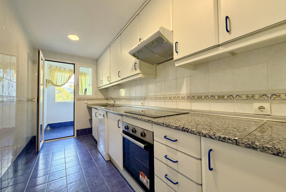 Spacious and Bright Layout: The apartment offers two luminous bedrooms with fitted wardrobes, two bathrooms (one en-suite in the master bedroom), and an open-concept, fully equipped American-style kitchen.