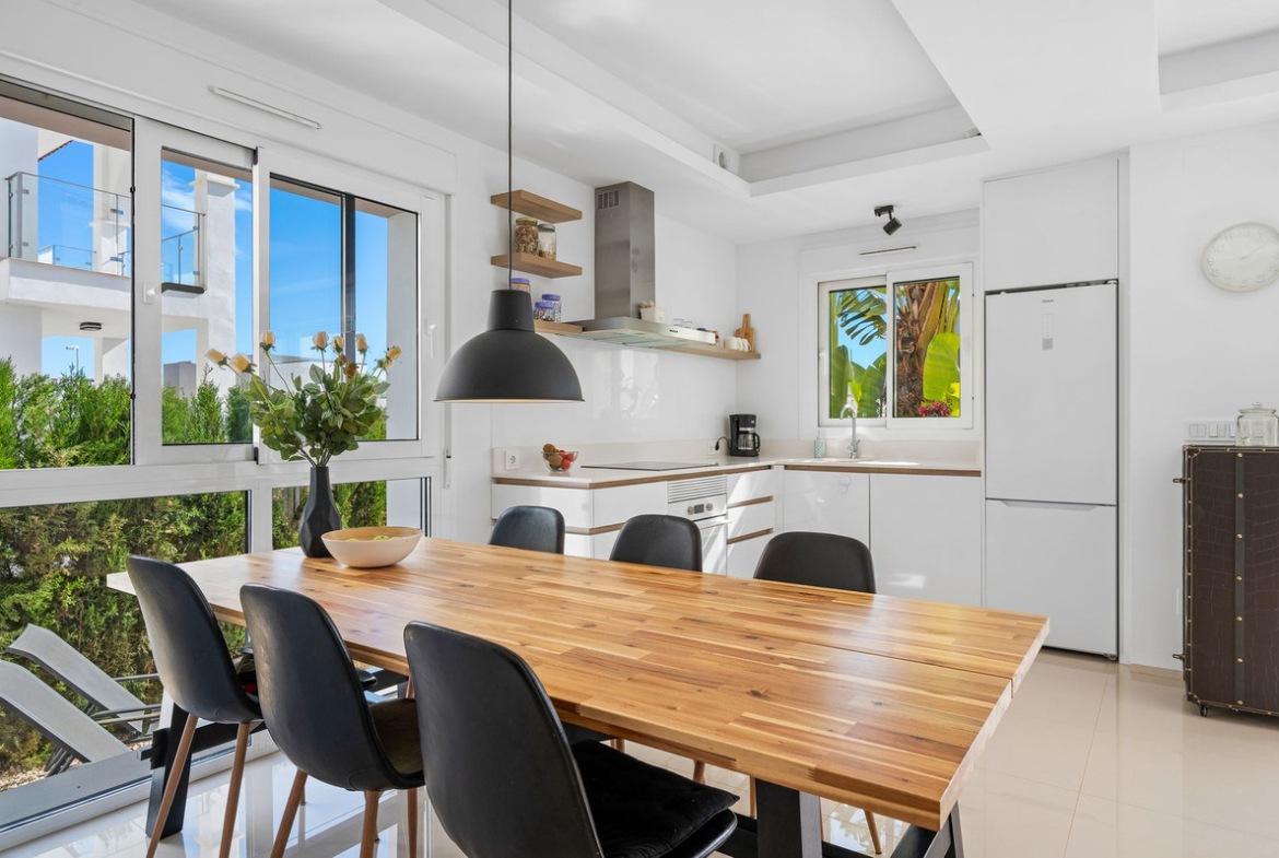 Just steps away lies the communal pool, close enough for a refreshing swim yet far enough to enjoy peace and privacy on your own terrace. The property also includes private parking, gated area. Thanks to its optimal orientation, the apartment enjoys sunlight all day, allowing you to soak up the Mediterranean sun all day long.