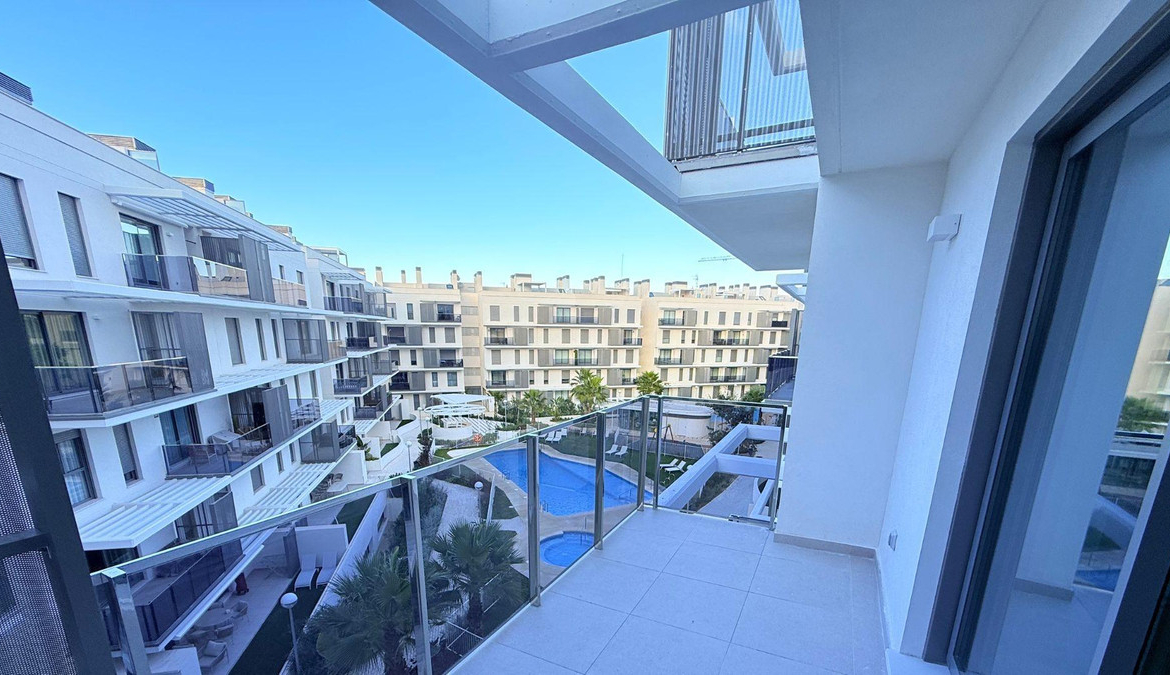 This modern apartment located in the beautiful town of Dénia, on the renowned Costa Blanca, represents an exceptional opportunity for both those seeking a home close to the sea and those looking to make a high-yield investment. The property, situated on the third floor of a contemporary four-story building constructed in 2025, offers a set of features that combine current design, functionality, and comfort. With a usable area of 58 m² and a constructed area of 81 m², the apartment boasts two bright bedrooms, two full bathrooms, a spacious living room that seamlessly integrates with a modern open-plan kitchen, and a 6.84 m² terrace that allows enjoyment of the Mediterranean climate and pleasant views surrounding the area. The interior layout has been designed to optimize space and natural light entry, using high-quality materials that ensure a comfortable and durable living experience throughout the year. The location of the property is one of its greatest attractions, as it is very close to the beach, the marina, shops, supermarkets, pharmacies, leisure centers, and a wide array of restaurants, allowing for full enjoyment of coastal life without sacrificing essential services. In addition to the advantages of the apartment itself, residents have access to a complete range of communal areas designed for well-being and daily enjoyment, including an extensive pool complex that integrates areas for adults and children, as well as a jacuzzi for relaxation; large green areas and well-maintained gardens; spaces designated for rest and socializing; a fully equipped indoor gym that allows for maintaining an active lifestyle without leaving the residential area; a social club intended for meetings or community activities; a multifunctional room that can be adapted to various needs; a storage room that complements the functionality of the home; and communal parking that enhances residents' convenience. Moreover, the annual expenses associated with the property are kept at reasonable levels, with an approximate IBI of 450 euros per year, a waste disposal fee of 120 euros annually, and a community cost of around 1,200 euros, making this home a balanced option in terms of quality-price ratio. All of these features, combined with proximity to the sea and the characteristic natural environment of Dénia, make this apartment an ideal choice for both permanent living and for vacation or tourist rental, providing a relaxed lifestyle while also being a solid investment in one of the most valued areas of the Costa Blanca.