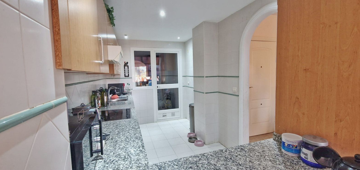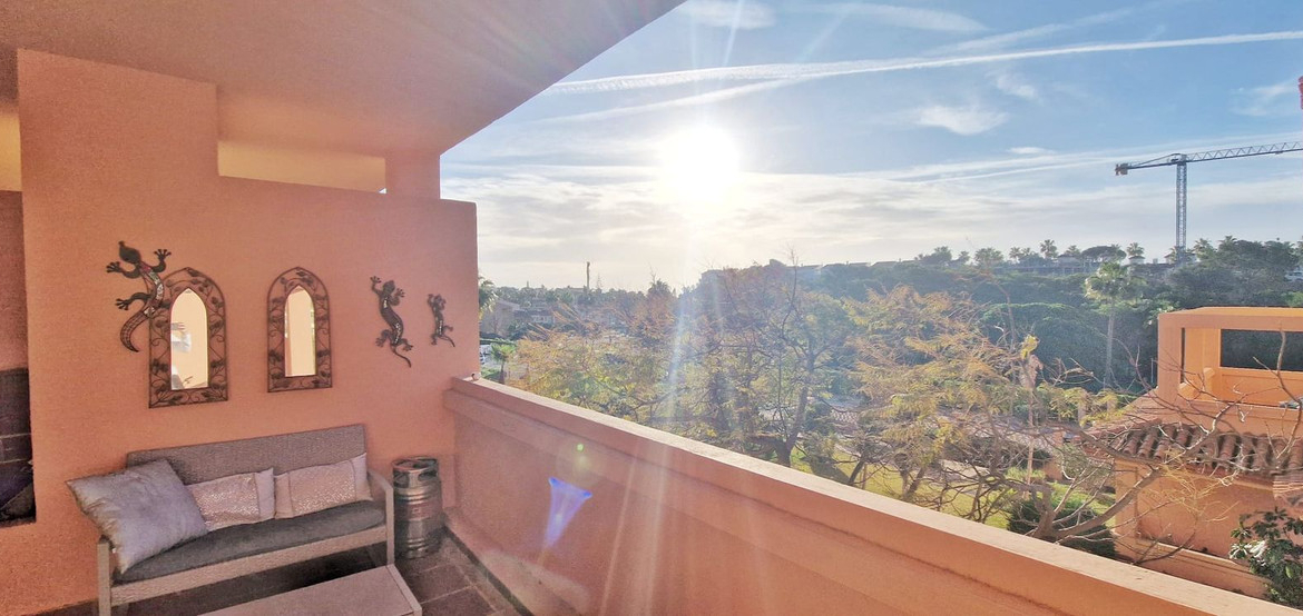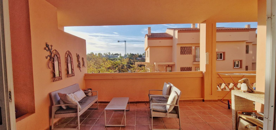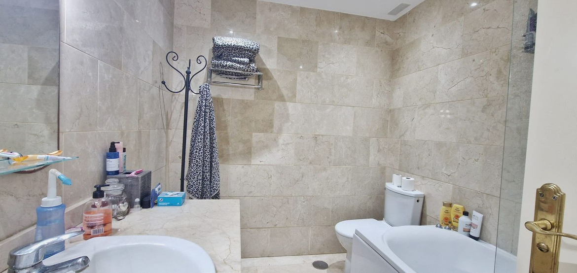 Lovely 2 bed 2 bath apartment located in a highly desirable area and only 5 minutes walk from the beach! This property is situated on an elevated ground floor and benefits from overlooking the gorgeous and very well maintained comunal gardens. The property features 2 large bedrooms with a master being en-suite and a second bathroom, both of which are a good size. There’s a a large and bright living room and a fully fitted open plan kitchen and off the living room you have a large South facing terrace which receives all day sun. The complex itself is very well maintained and has lovely green areas and large communal swimming pool. The beach is 5 minutes walk and there are many bars, shops, restaurants and a pharmacy within a 3 minute walk making the location of this property unbeatable!