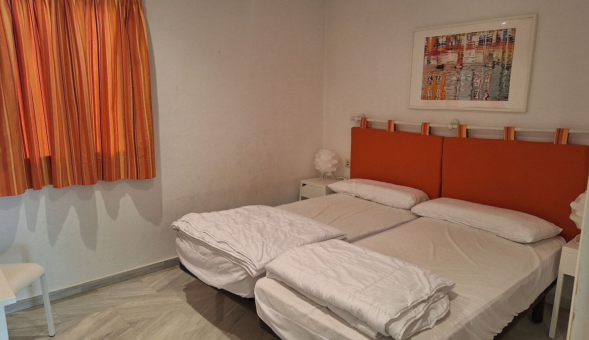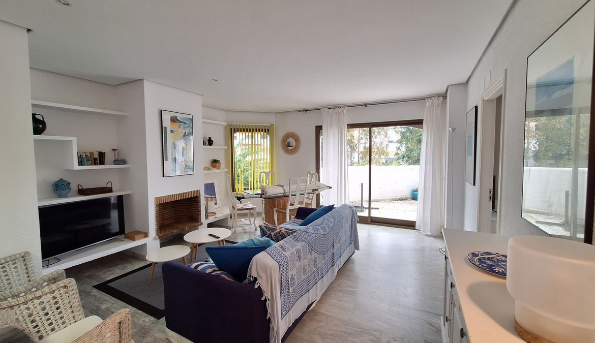Charming 2 beds apartment, located on the first floor without elevator, just a five-minute walk to the beach in Elviria, located in the Urb. Golden Beach. At the entrance of the apartment we find a hall, and a small kitchen, two bedrooms and two bathrooms, one of them en-suite. A bright living room connects to the sunny terrace with beautiful open views towards garden areas.