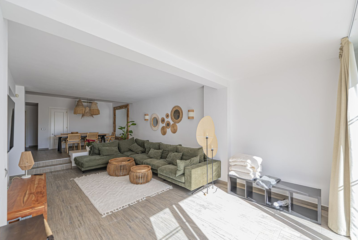 This spacious ground-floor property offers two bedrooms, two bathrooms, a large living room with an open-plan kitchen, and a fantastic terrace of approximately 50m².