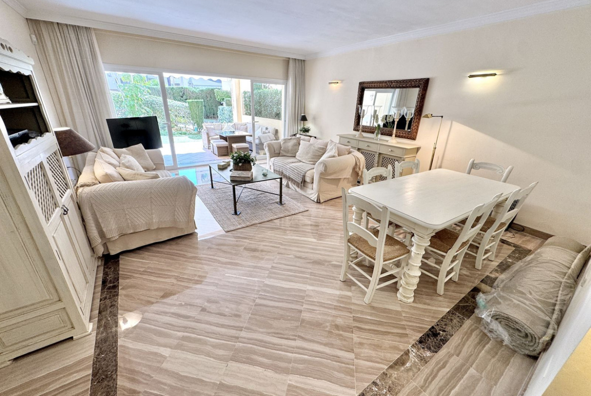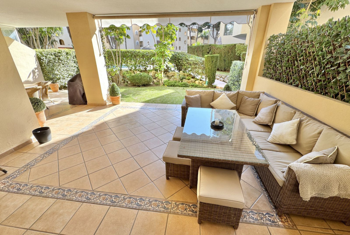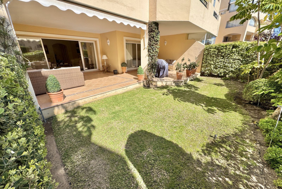 BEST BUY ALERT – Elviria Beachside (exclusive new listing) – Stunning 2 bedroom, 2 bathroom luxury apartment with large private use south-facing terrace & garden, all only 5 mins walk to beach, offering the ultimate Mediterranean lifestyle in the prestigious Hacienda Playa development.