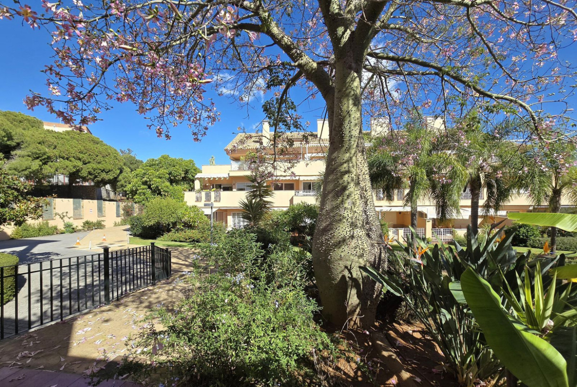 Few places in East Marbella boast such spectacular gardens, large communal pools, and extensive amenities like this resort-style development. Amid the buildings, planters, and walkways, you’ll find eucalyptus trees towering over 50 metres, more than 100 varieties of ornamental plants, colourful bougainvillaeas, and century-old cork oaks.