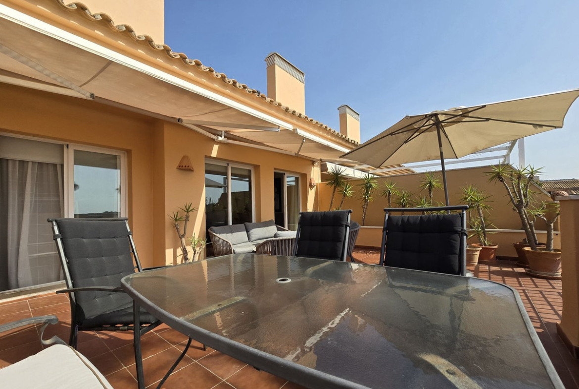 This bright two-storey penthouse is in good condition and comprises a large living and dining room with access to a spacious terrace. The kitchen is located at the rear, as is the second bedroom. A complete family bathroom is also on this level.