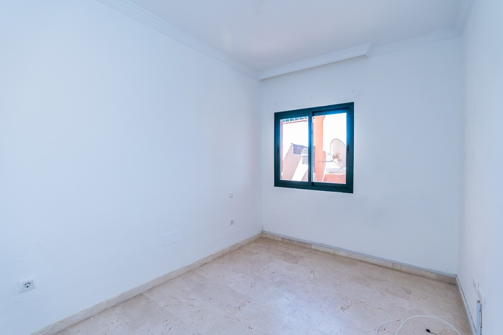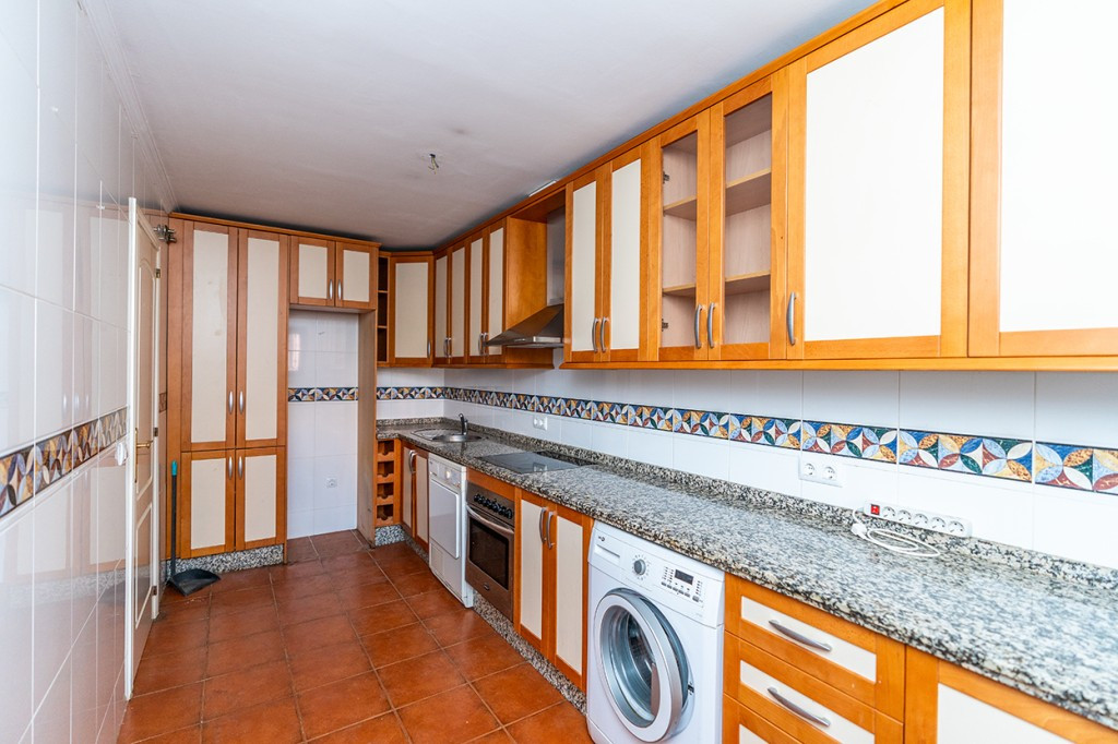 Apartment with sea views in Elviria next to Santa María Golf offering two bedrooms, two bathrooms, a very large kitchen, ample and bright living room and terrace. The apartment offers AC hot and cold, marble floors, underground parking space and storage room. Gated complex with three pool areas, gardens and within a short drive to the beach and all local amenities.