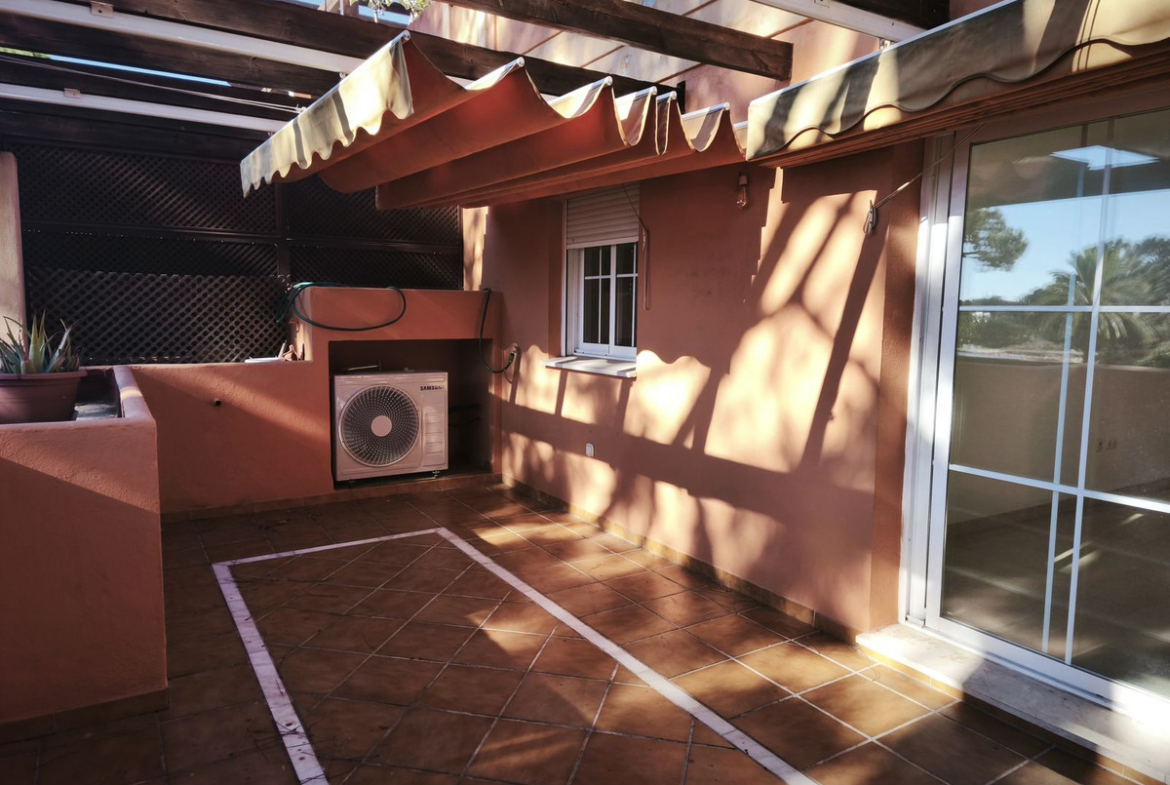 This lovely property is perfectly liveable as is but would benefit greatly from some renovation in order to bring it up to comfortable standard. The airconditioning is central controlled for the whole apartment is is less than a year old, hot water tank is also new. A large and securely fenced communal pool is set in beautifully maintained gardens and there is plentiful street parking in the area. At night-time the urbanisation is patrolled by a security guard. With views from the sunny 20m2 terrace which overlook the pool and gardens.