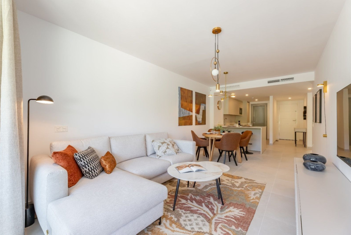 Set within the prestigious Estrella del Mar development, located in the peaceful and green surroundings of Elviria, this elegant ground-floor apartment has been thoughtfully designed to offer comfort, privacy, and a harmonious connection with its natural setting.
