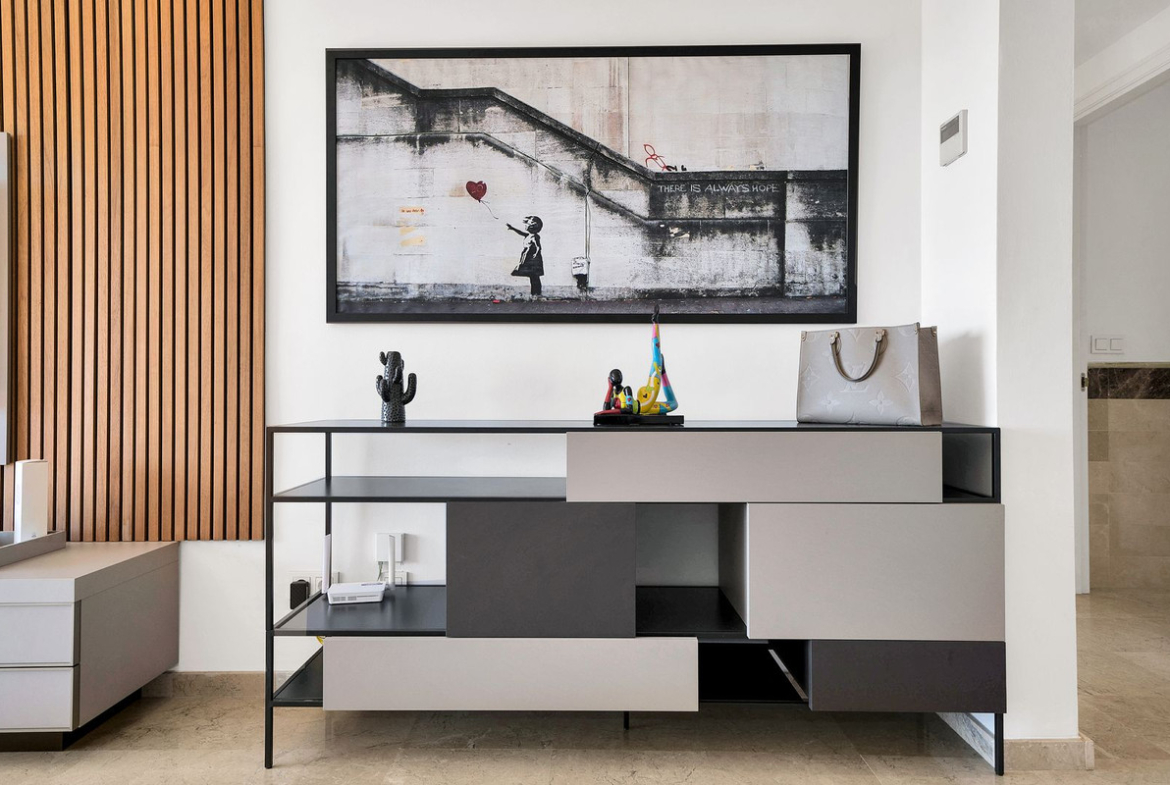 Residents of Elviria Hills benefit from excellent amenities, including a golf course, a communal swimming pool, and the renowned Michelin-starred restaurant “El Lago.” The property also comes with a secure underground garage and additional storage space for convenience.