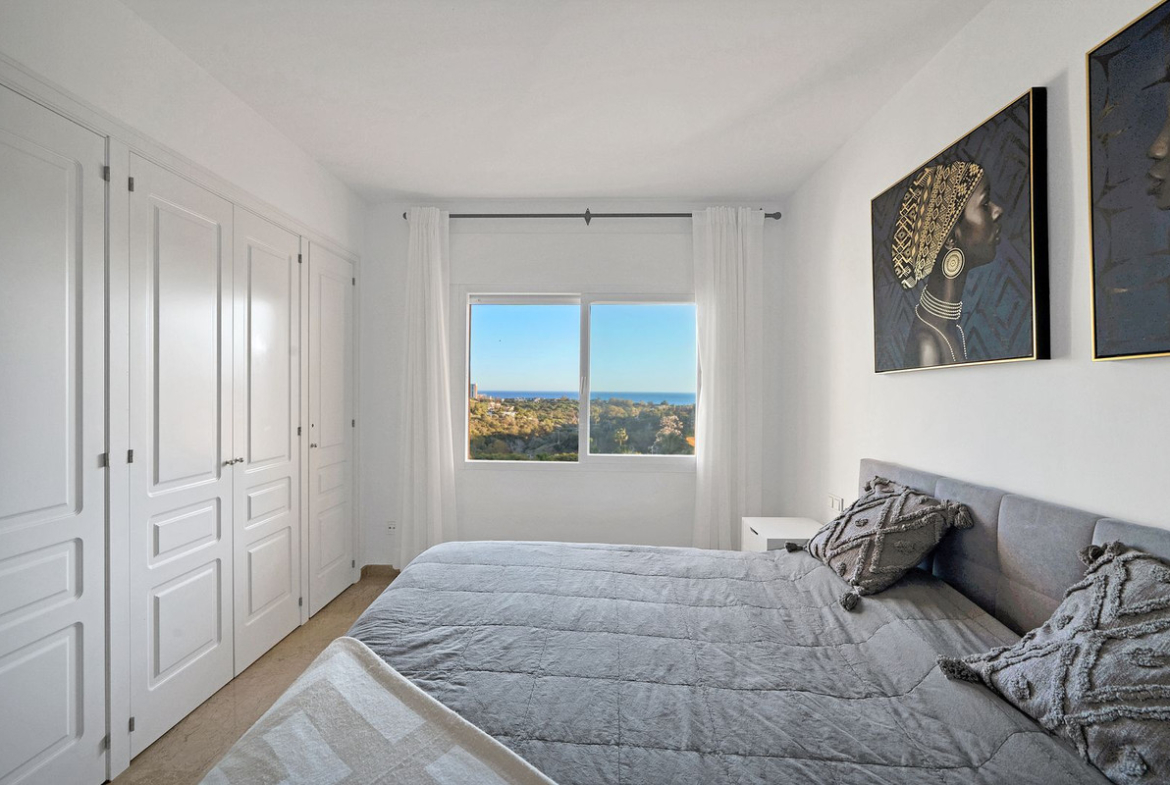 Located in the sought-after Elviria Hills community, this well-positioned 2-bedroom, 2-bathroom apartment offers stunning panoramic sea views and a full south-facing orientation. Situated in one of the best blocks of the development, this home provides a bright and inviting living space with a spacious terrace to enjoy the Mediterranean scenery.