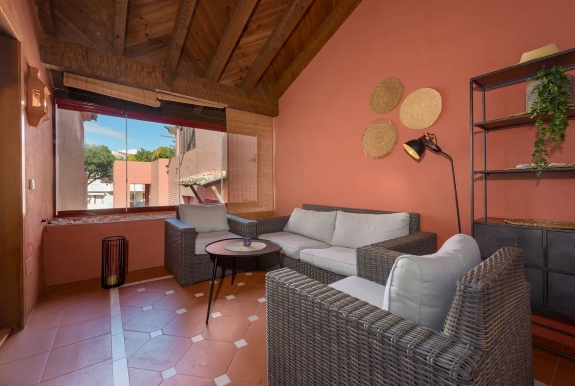 Tucked away in the upscale Elviria district of the renowned Jardines de Don Carlos community, this apartment places you a mere 300 meters from the pristine sands of Playa del Real de Zaragoza. Enjoy the tranquility of a second-line coastal setting, where peaceful residential vibes meet seamless beach access—ideal for morning strolls or sunset dips in the sea.