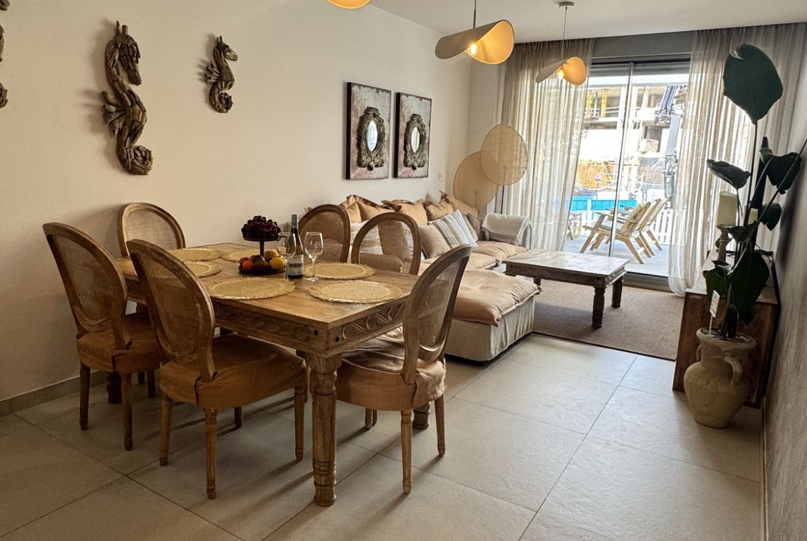 For sale a unique, cozy apartment with two bedrooms and two bathrooms, located just 300 meters from the wide, sandy beach. It is located in a quiet area, in a new building, with easy access to all amenities – nearby shops, restaurants, as well as famous venues such as La Plage Casanis, The Beach House and La Scala.