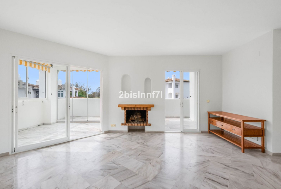 Recently repainted the property features two bedrooms, both with direct access to the large uncovered terrace and balconies. The spacious living room also opens onto a covered and glassed-in terrace, ideal for entertaining or enjoying the winter time and the adjoined dining room also has access to the uncovered terrace. There are two bathrooms, one of them en suite. The kitchen is fitted and functional.
