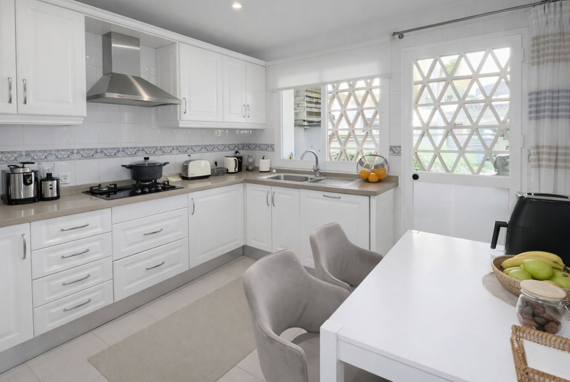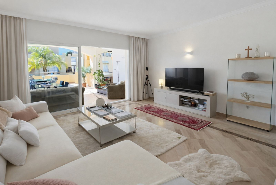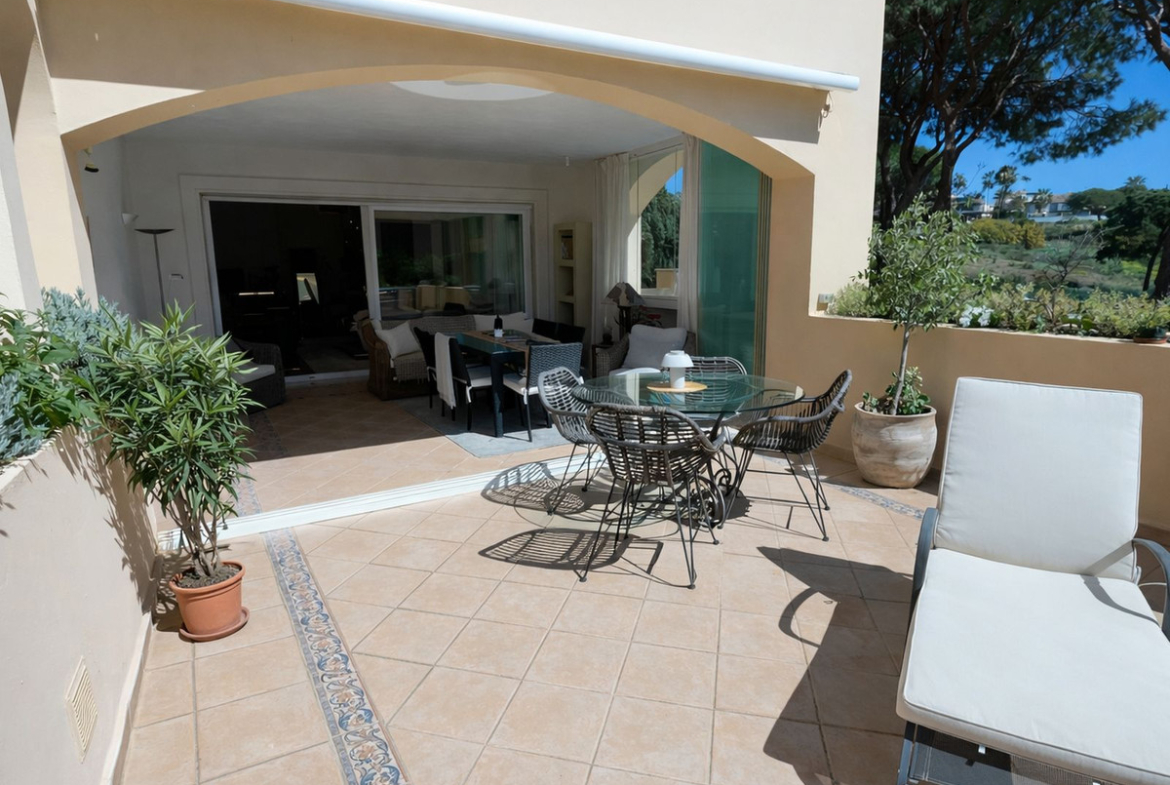 Beautiful apartment located in Hacienda Elviria, one of the most sought-after residential areas of Marbella, surrounded by nature and tranquility and just a few minutes from the best beaches of the Costa del Sol. The property offers 118.50 m² built, plus an independent laundry room of 4.34 m² and a spacious 61.41 m² terrace, perfect for enjoying Marbella’s sunny climate all year round. The apartment is distributed in an entrance hall, bright living-dining room with direct access to the terrace, independent kitchen, laundry room, two bedrooms, two bathrooms and a guest toilet, providing a comfortable and functional layout. Located on the ground floor of a well-maintained residential complex with communal garden areas, it offers privacy and a peaceful environment. The property is situated in Elviria (Las Chapas), a consolidated area with international schools, golf courses, supermarkets, restaurants and all services nearby, and only a short drive from the beach and Marbella town centre, making it ideal as a permanent residence, holiday home or investment opportunity on the Costa del Sol.