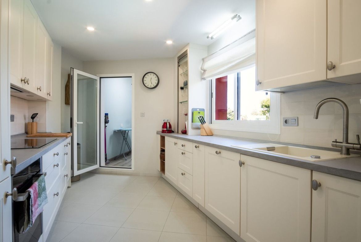 We offer a unique apartment in one of the best beachfront complexes in Elviria. This cozy, fully renovated two-bedroom apartment with a spacious living room and a panoramic terrace is a perfect choice for those who appreciate comfort and privacy. It features manicured gardens, a private tennis court, a swimming pool, a pond, and private access to some of Marbella's best beaches. The new kitchen is equipped with MIELE, NEFF, and LIEBHER appliances. New air conditioning system from DAIKIN. It also features a separate laundry room and dressing room. A spacious 25 m² storage room and a parking space are included.