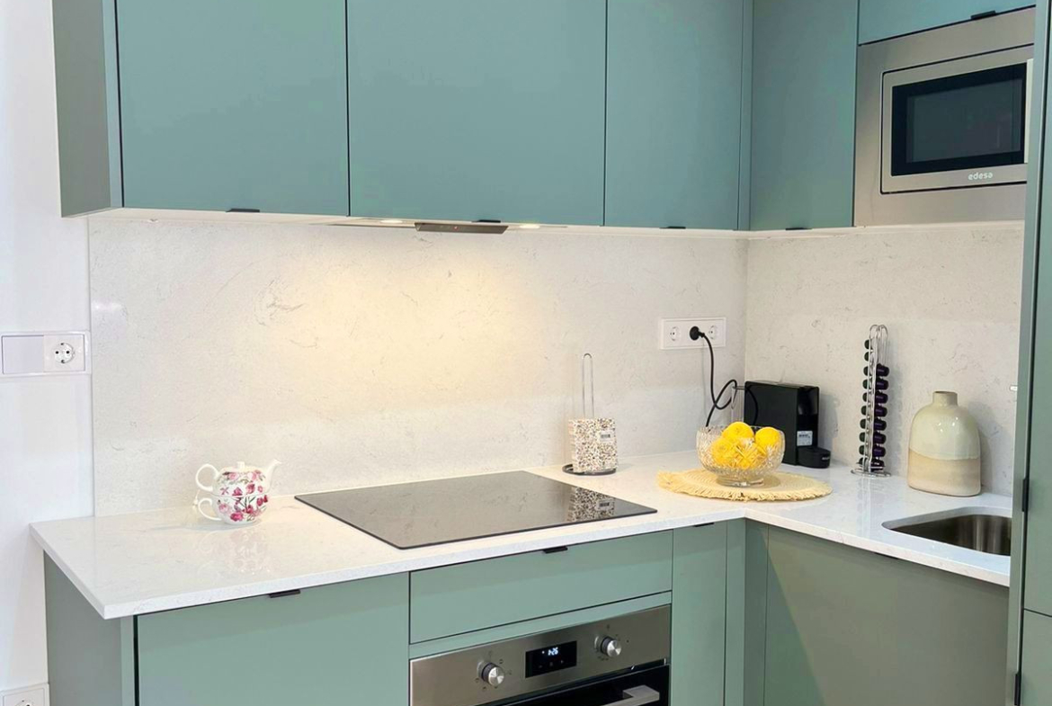 COZY APARTMENT IN BAHÍA DORADA, FIRST LINE BEACHFRONT. Located in a well-kept and peaceful beachfront development with beautifully maintained communal gardens and a community pool ideal for enjoying the Mediterranean climate, this attractive 2-bedroom apartment represents an excellent opportunity both as an investment with high rental potential and as a holiday home or permanent residence. With a northeast orientation that provides gentle natural light and a cool atmosphere, the 51 m² property features air conditioning, a fully renovated kitchen with brand-new appliances, and a functional layout that maximizes space to offer comfort and privacy. This property currently holds an active holiday rental license. A unique opportunity to acquire a home by the sea, in a secure, serene, and well-managed environment where you can enjoy the true coastal lifestyle.