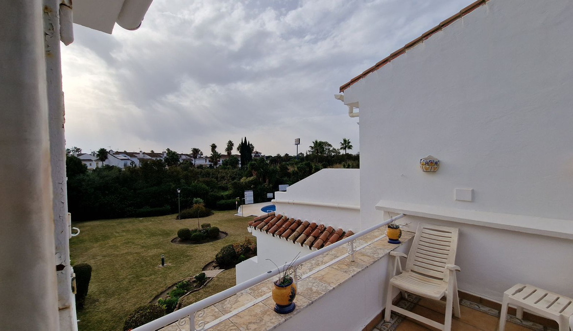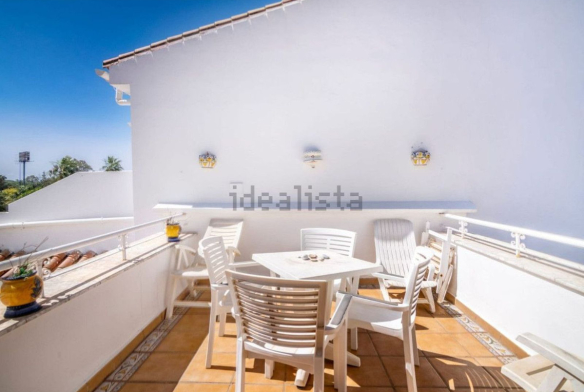 This two-bedroom, two-bathroom top-floor apartment is located in a beautiful residential complex within walking distance to shops, a supermarket, and restaurants. It has easy access to the A7 and is a very short drive to the golf courses of El Paraiso and Atalaya.