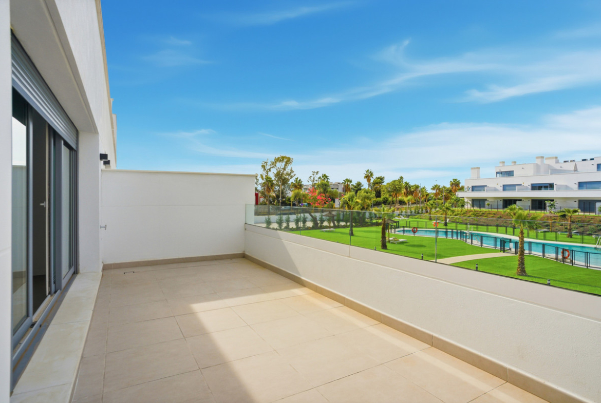 Brand new southwest facing two bedroom apartment located in the sought-after gated community Acqua Gardens , ideally located close to shops, restaurants, and all essential amenities on the New Golden Mile. This unfurnished property features an elegant open-plan layout with a sleek modern kitchen seamlessly connected to the bright living and dining area, opening onto a spacious terrace perfect for relaxing or entertaining. Built to the highest standards, fitted wardrobes, and air conditioning throughout, ensuring year-round comfort. Residents have access to beautifully landscaped gardens, a chic pool deck, a fully equipped gym, and a co-working lounge with café. The property also comes with one private underground parking space, one exterior parking space within the secure gated community, and a storage room; offering the ideal blend of style, comfort, and modern Mediterranean living.
