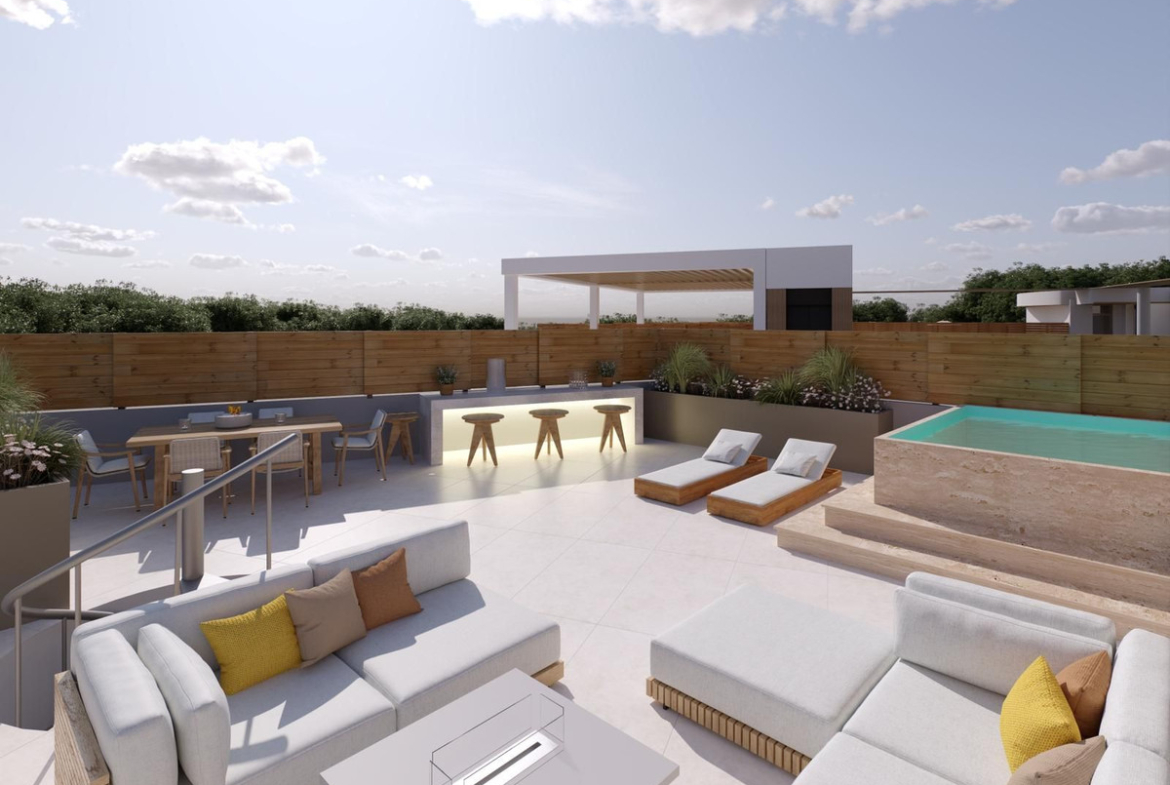 Vivienda 25 impresses with its exclusive rooftop solarium featuring a private plunge pool, offering the ideal space to relax, entertain, and take in panoramic views of Estepona’s skyline. With a total of 61 m² of outdoor space — comprising a 33 m² main terrace and a 28 m² rooftop solarium — this residence epitomizes the Costa del Sol’s indoor–outdoor lifestyle.