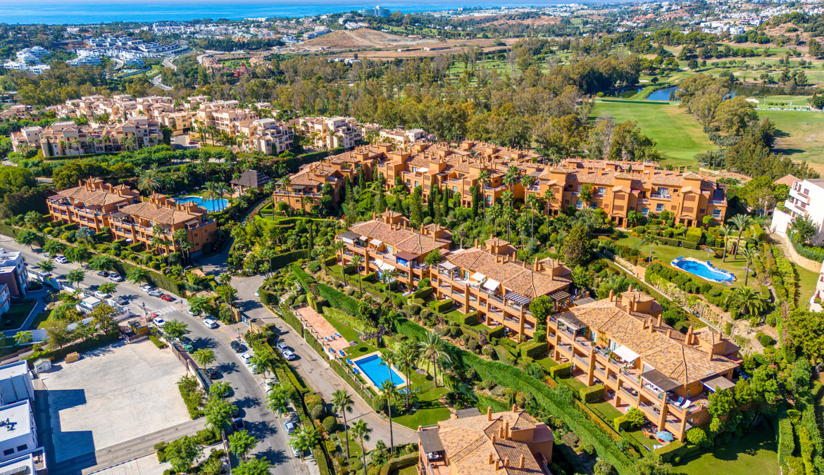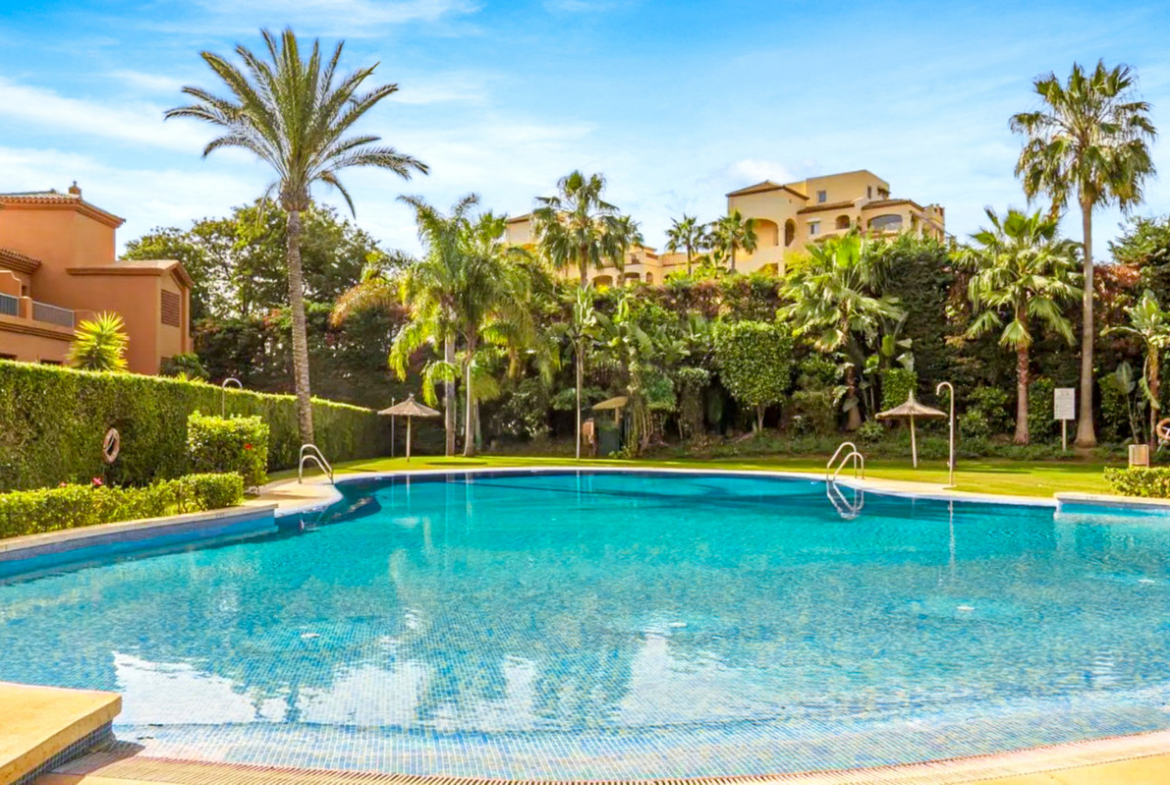 Wonderful two-bedroom, ground floor apartment located in the sought after gated community of Benatalaya, Estepona East. The community offers 24hr security, concierge, communal swimming pools, indoor heated pool, gym, sauna, hammam and is located next to local schools’ shops and a short drive to the beach. The property has an open plan living and dining room with direct access to the private terrace and garden; fully fitted kitchen; master suite with access to the terrace; guest bedroom; and guest bathroom. Other features include hot and cold air conditioning, underfloor heating in the bathrooms, electric shutters, private parking space and a storeroom. A perfect property for year-round living or holiday home.