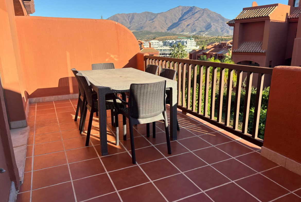 Bright, furnished triplex apartment located in the Costa Galera development, a quiet area surrounded by greenery, just 10 minutes from Estepona's city center and a 5-minute walk from Playa Galera and the Estepona Coastal Corridor.